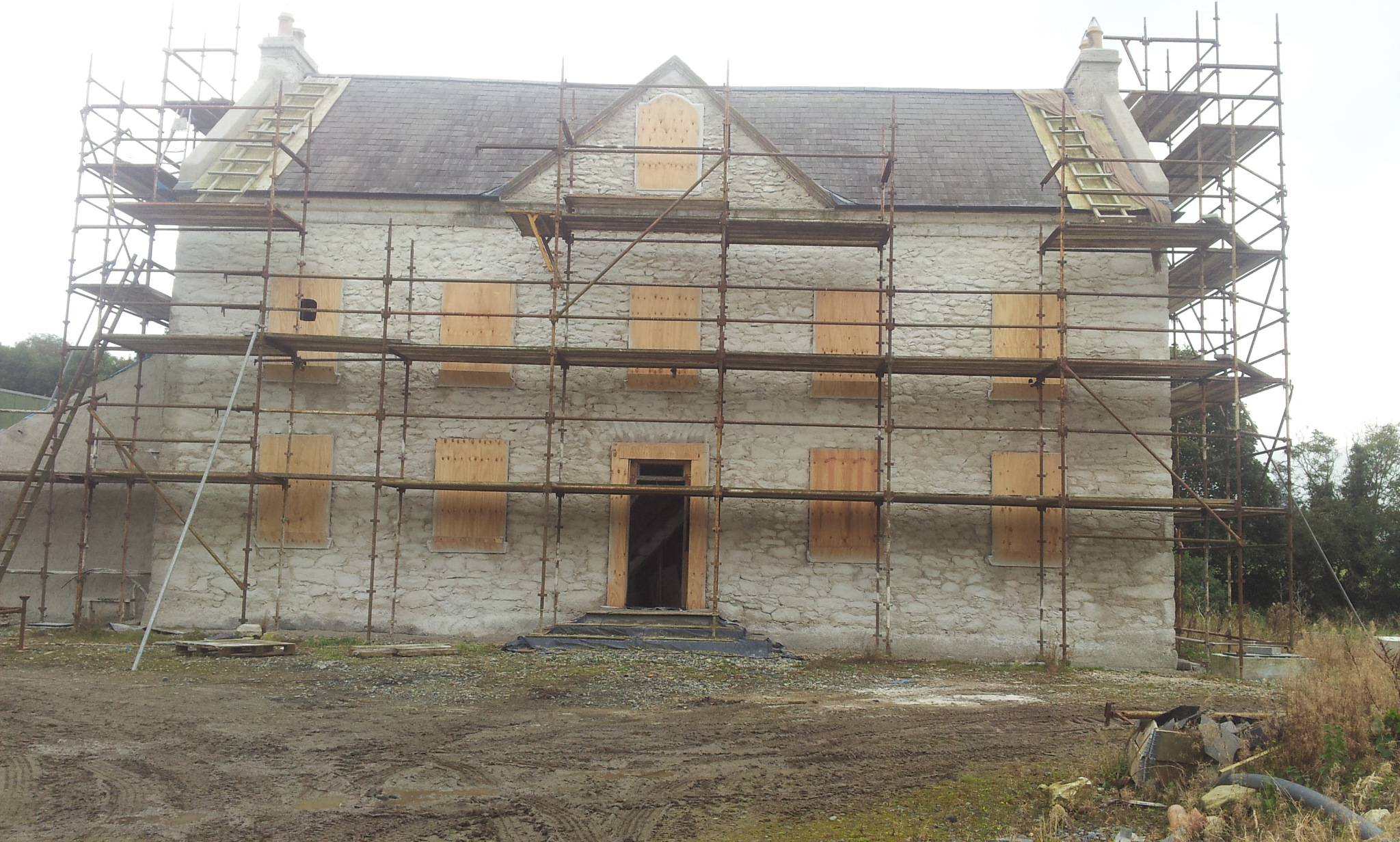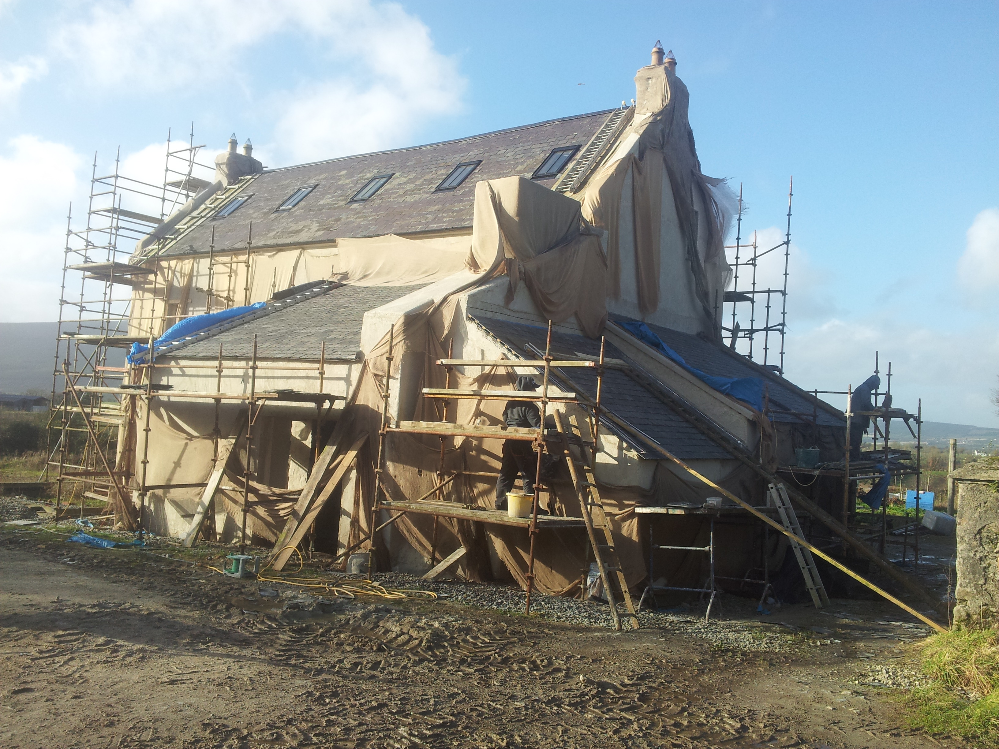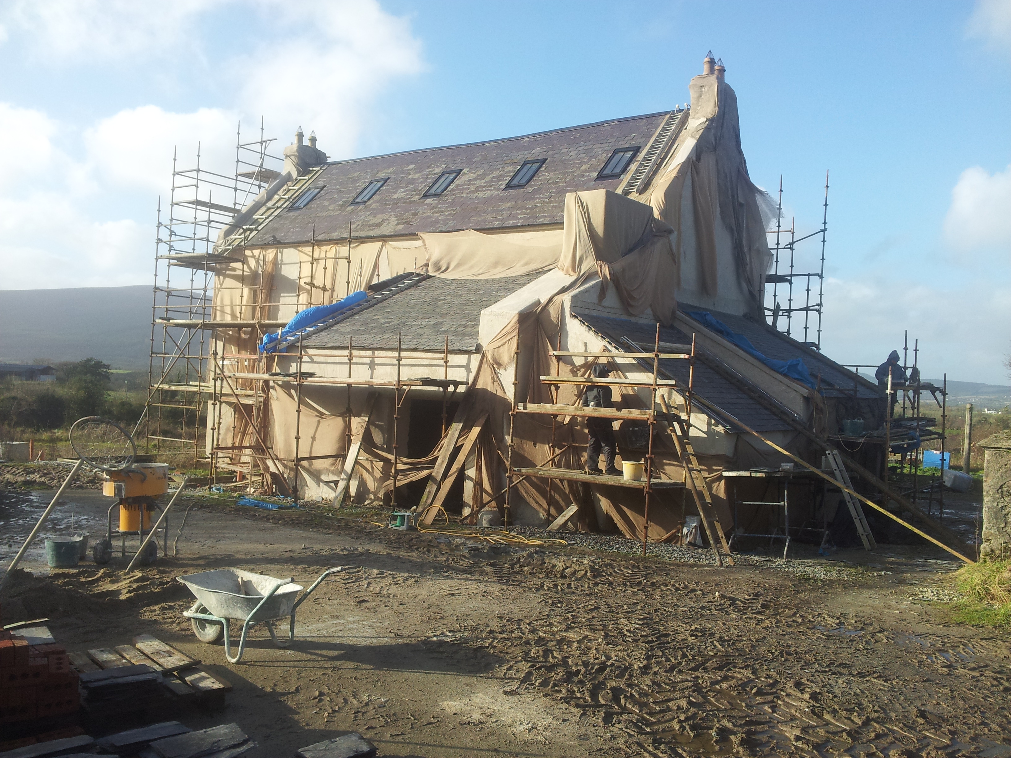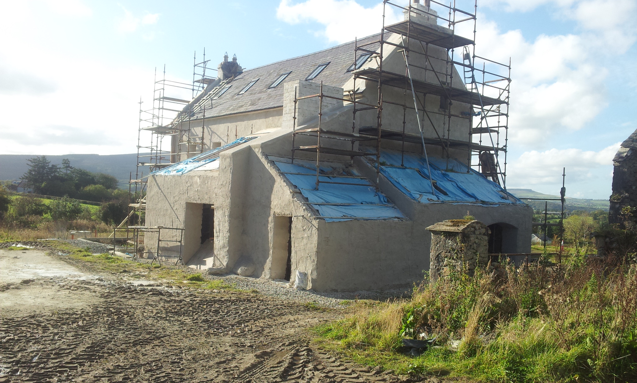 works, PHASED WORKS 2011 - 2012 - 2013 - 2019- 2022 Other Sub Contractors: Main Roof by other contractor, small lean too roofs by OldBuilders Job Description: External conservation work, stoneworks and replace Lime Mortar barges. Comprising of rebuilding of stone walls, chimneys, stone patching, re-roofing of lean toos. Drainage utilities, waste and services. Lime Plastering, Lead flashing. Extensive joinery reproducing 18th century doors architraves stairs New extension in clay block and glass. |