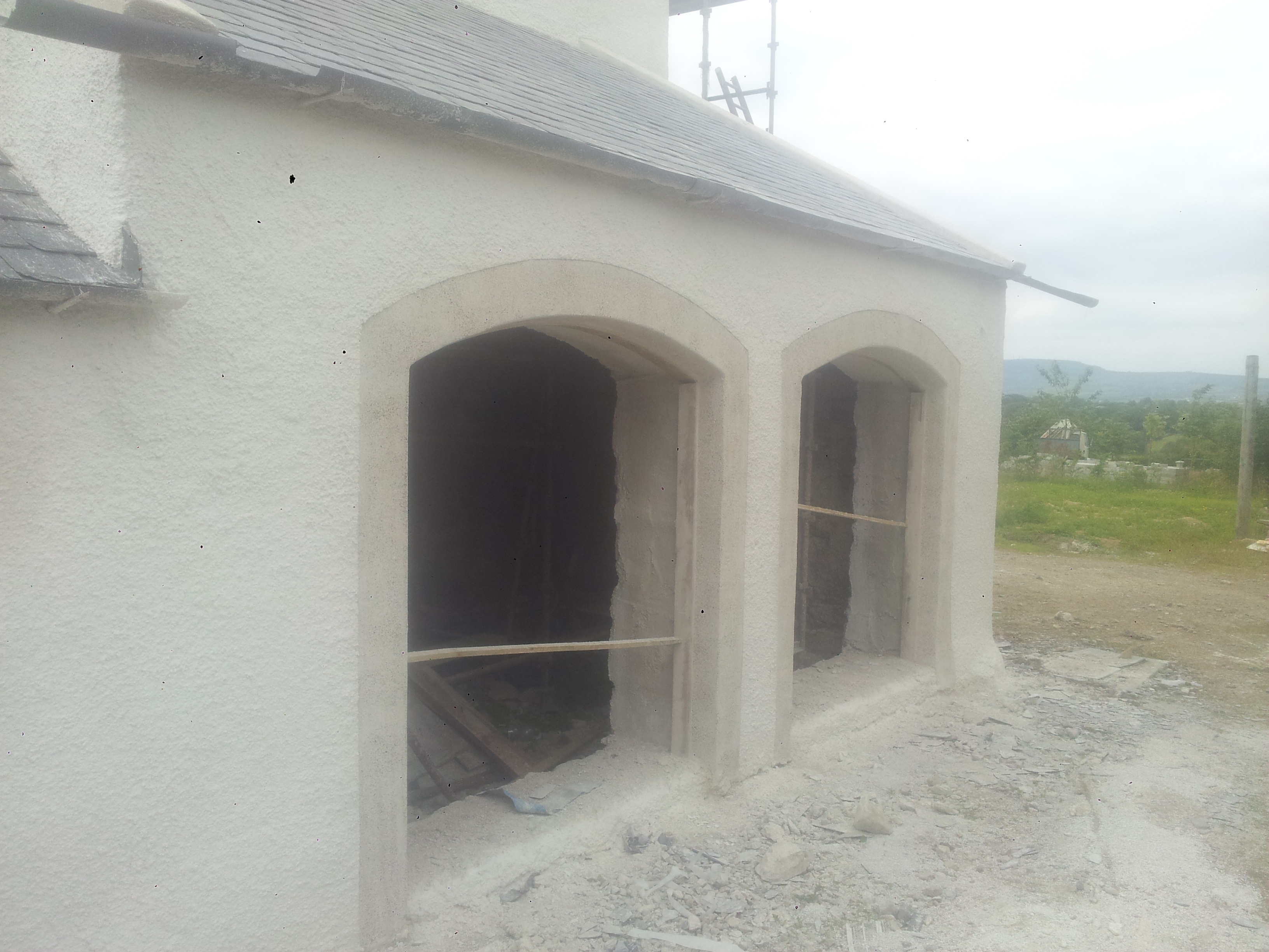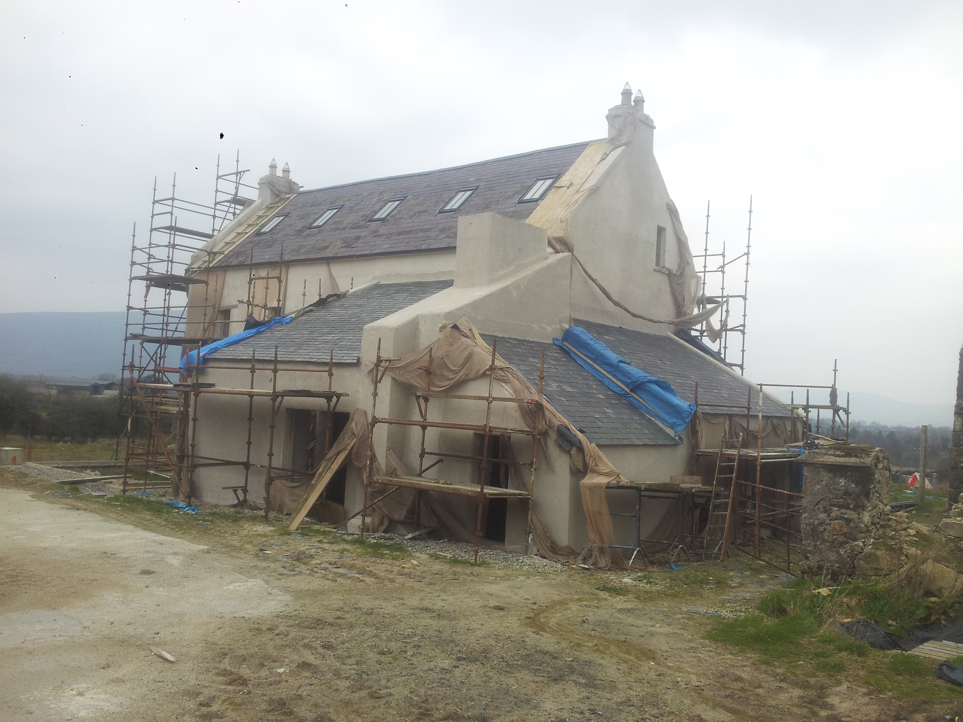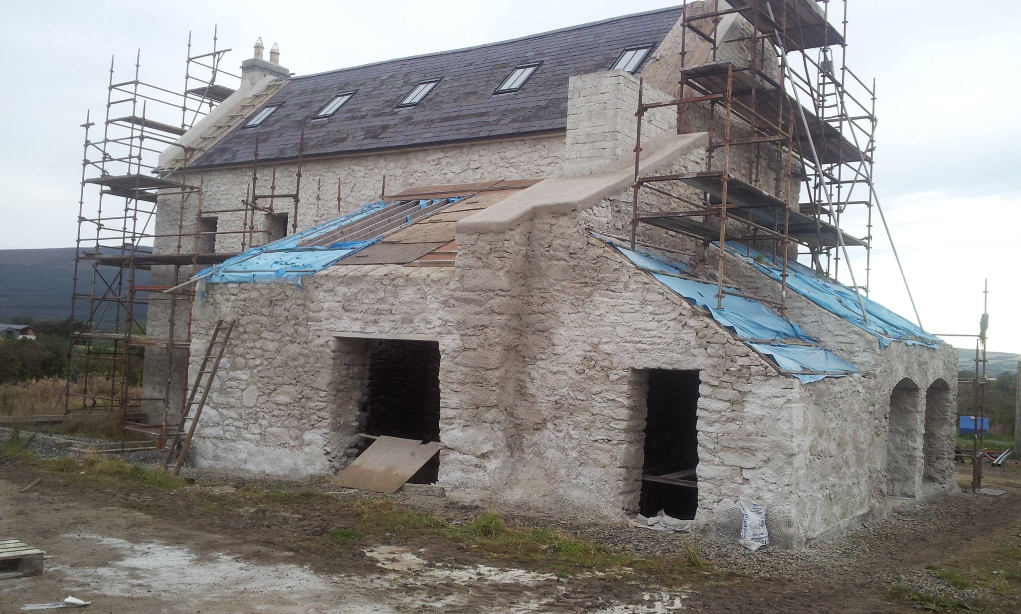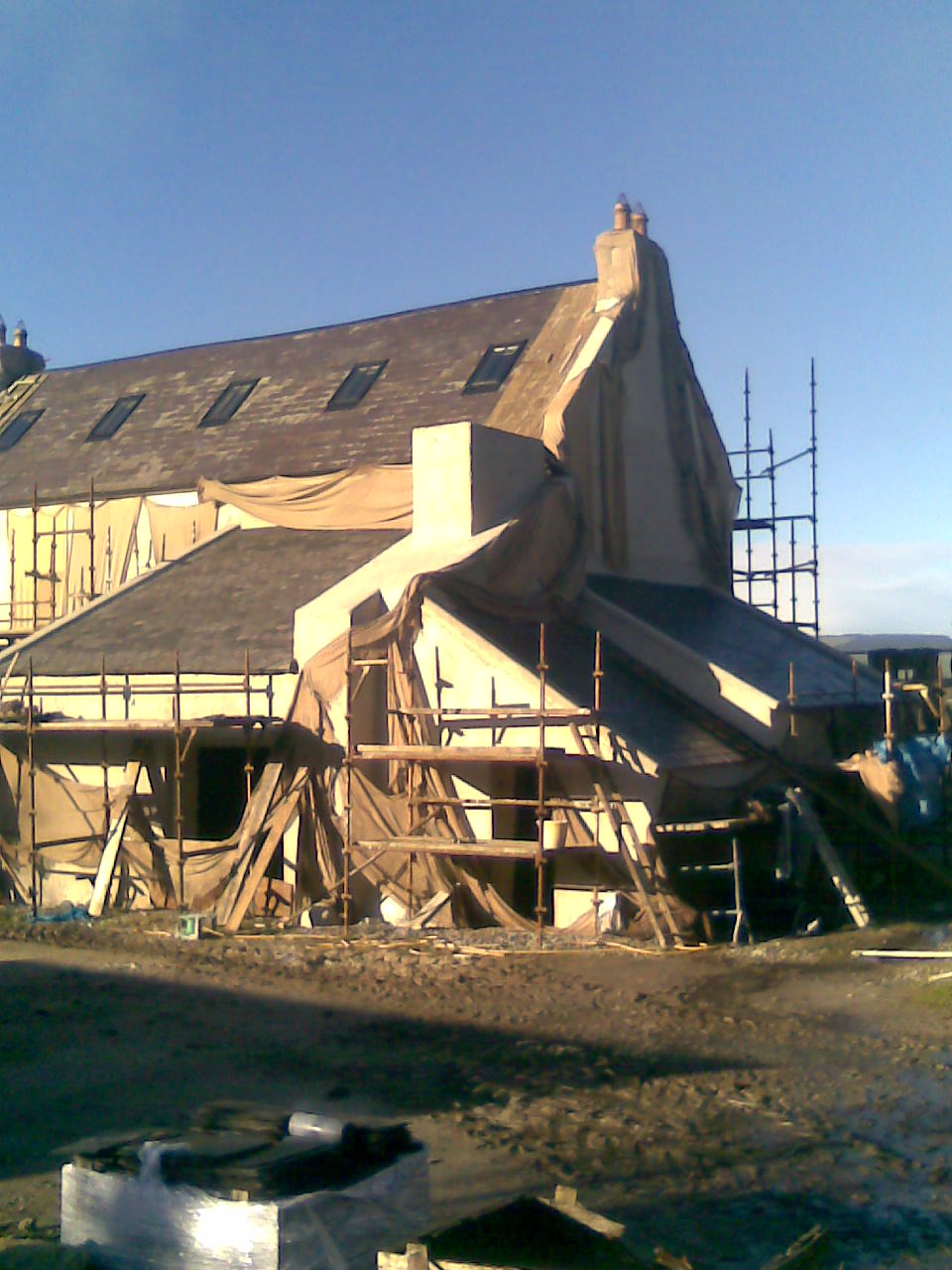 works, PHASED WORKS 2011 - 2012 - 2013 - 2019- 2022 Other Sub Contractors: Main Roof by other contractor, small lean too roofs by OldBuilders Job Description: External conservation work, stoneworks and replace Lime Mortar barges. Comprising of rebuilding of stone walls, chimneys, stone patching, re-roofing of lean toos. Drainage utilities, waste and services. Lime Plastering, Lead flashing. Extensive joinery reproducing 18th century doors architraves stairs New extension in clay block and glass. |