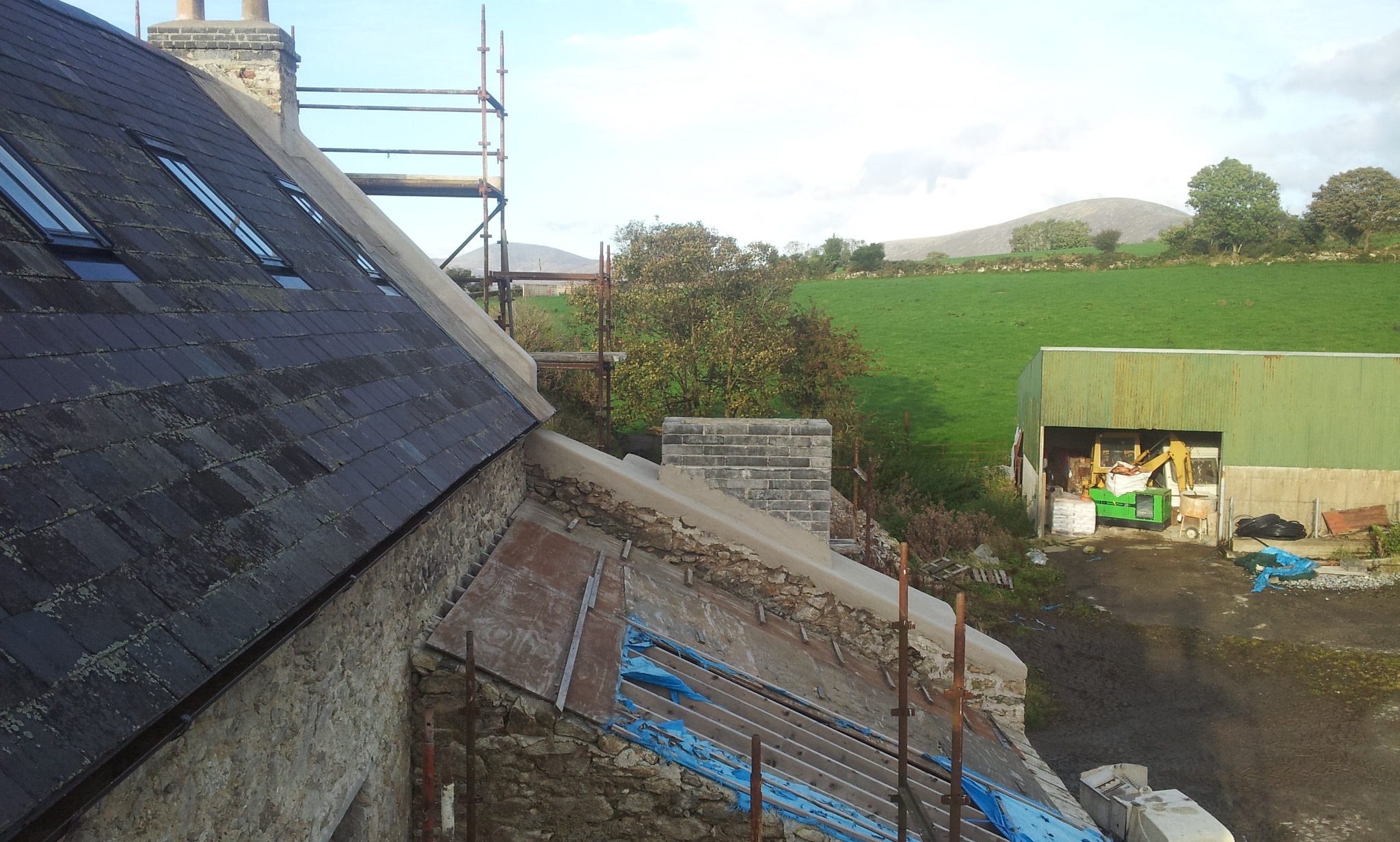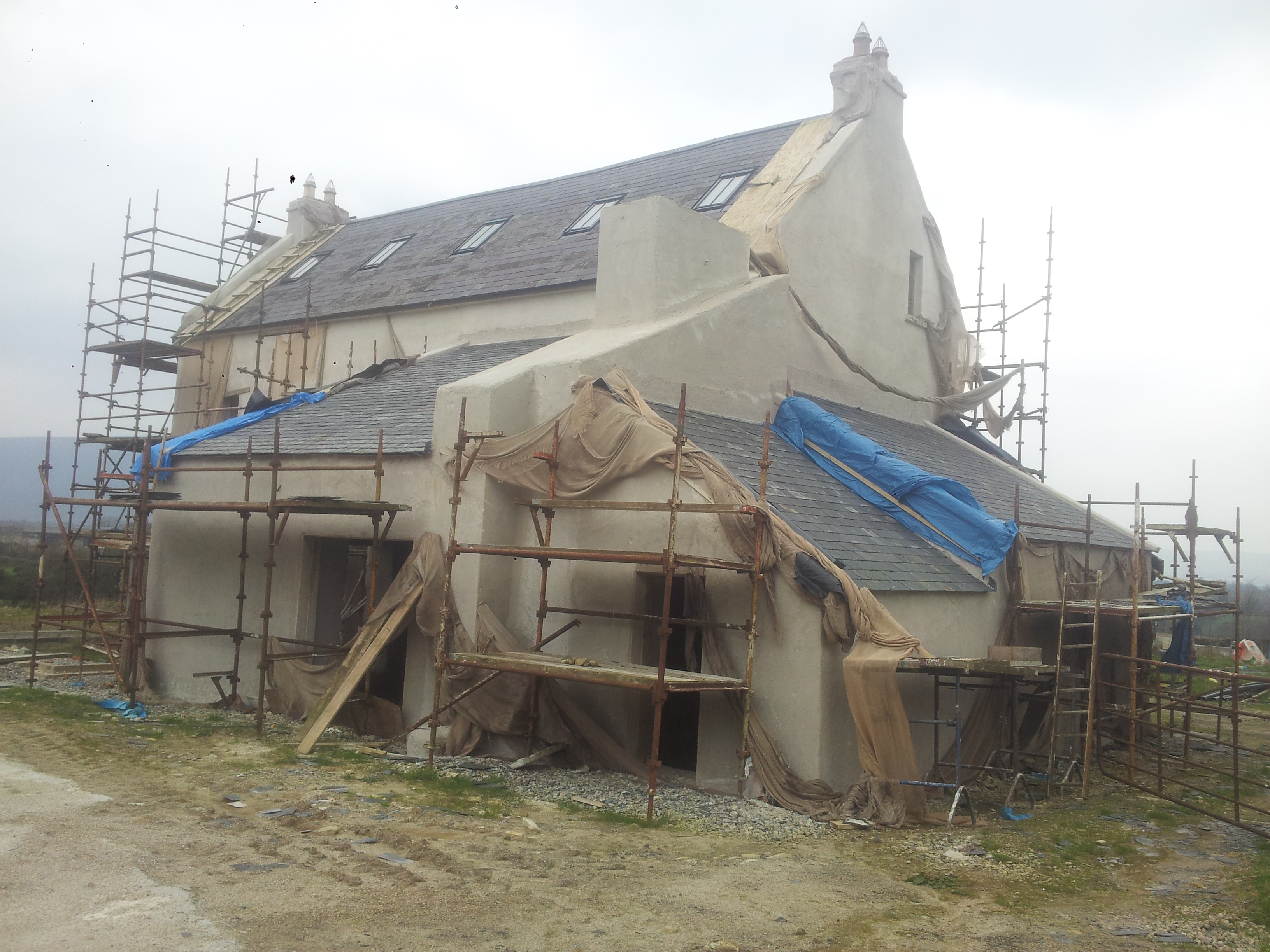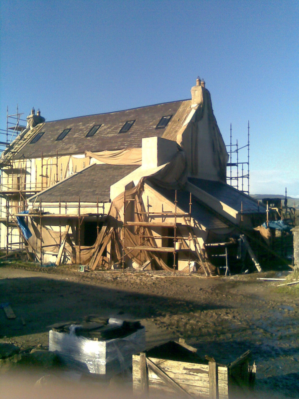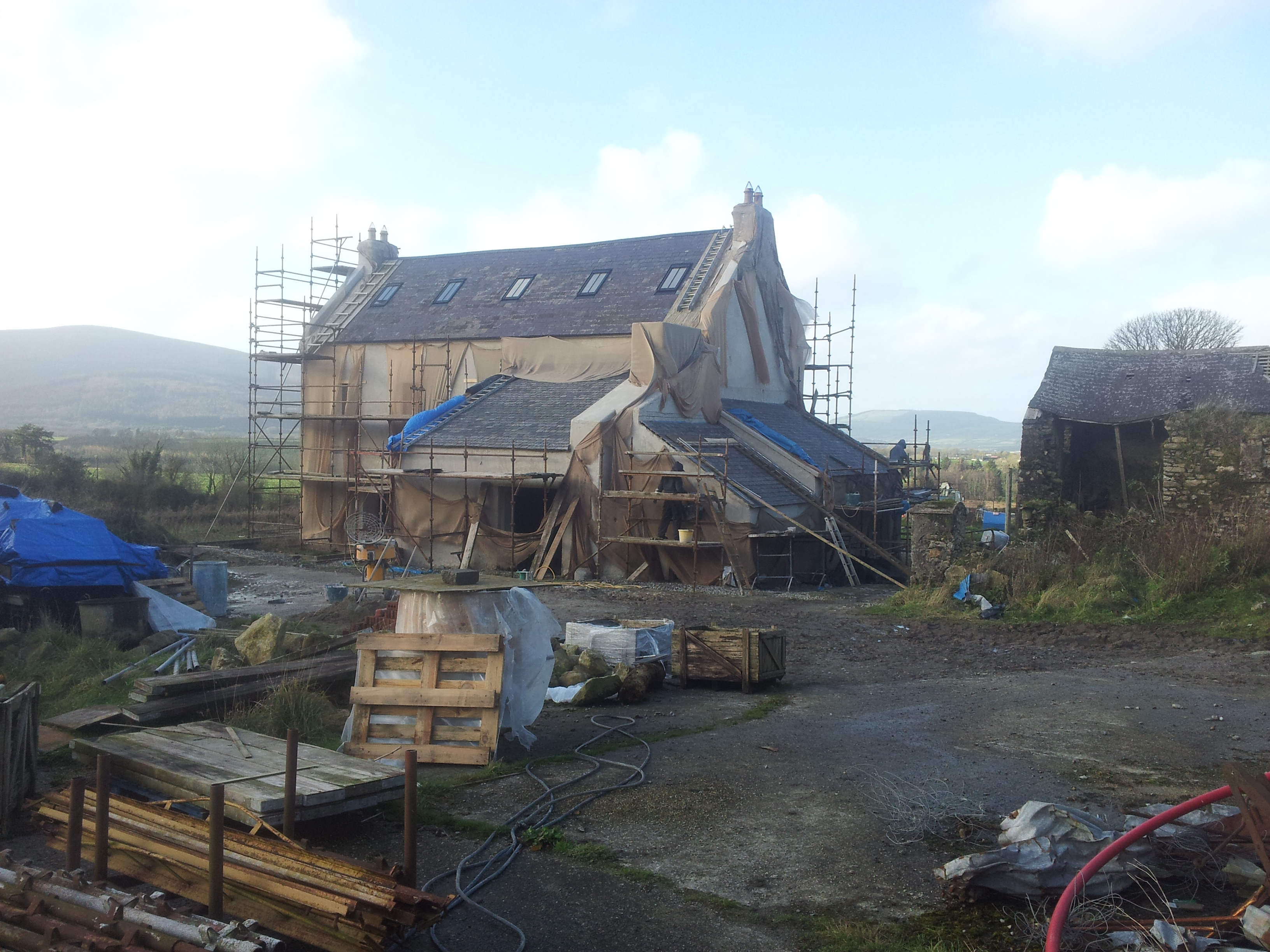 works, PHASED WORKS 2011 - 2012 - 2013 - 2019- 2022 Other Sub Contractors: Main Roof by other contractor, small lean too roofs by OldBuilders Job Description: External conservation work, stoneworks and replace Lime Mortar barges. Comprising of rebuilding of stone walls, chimneys, stone patching, re-roofing of lean toos. Drainage utilities, waste and services. Lime Plastering, Lead flashing. Extensive joinery reproducing 18th century doors architraves stairs New extension in clay block and glass. |
