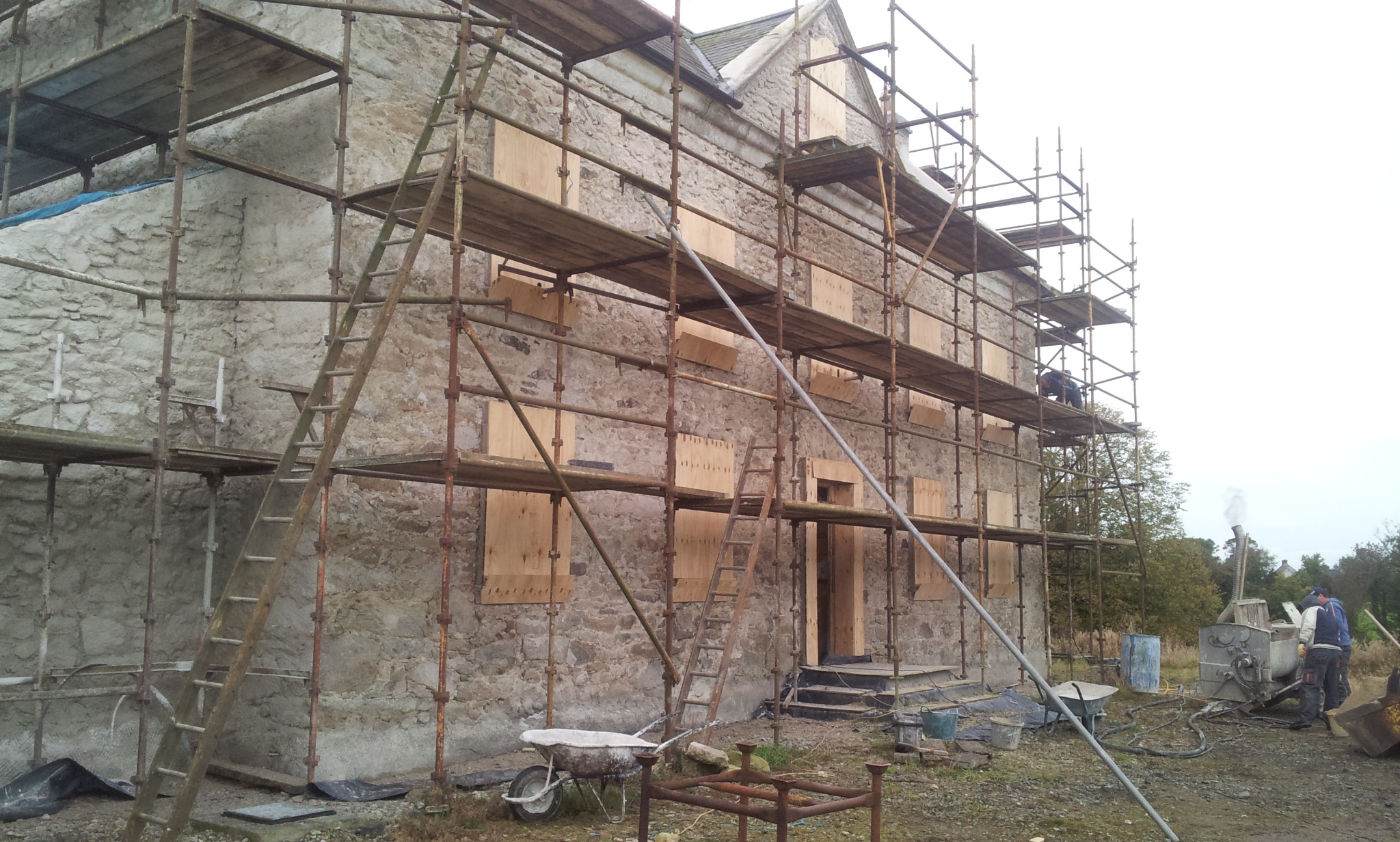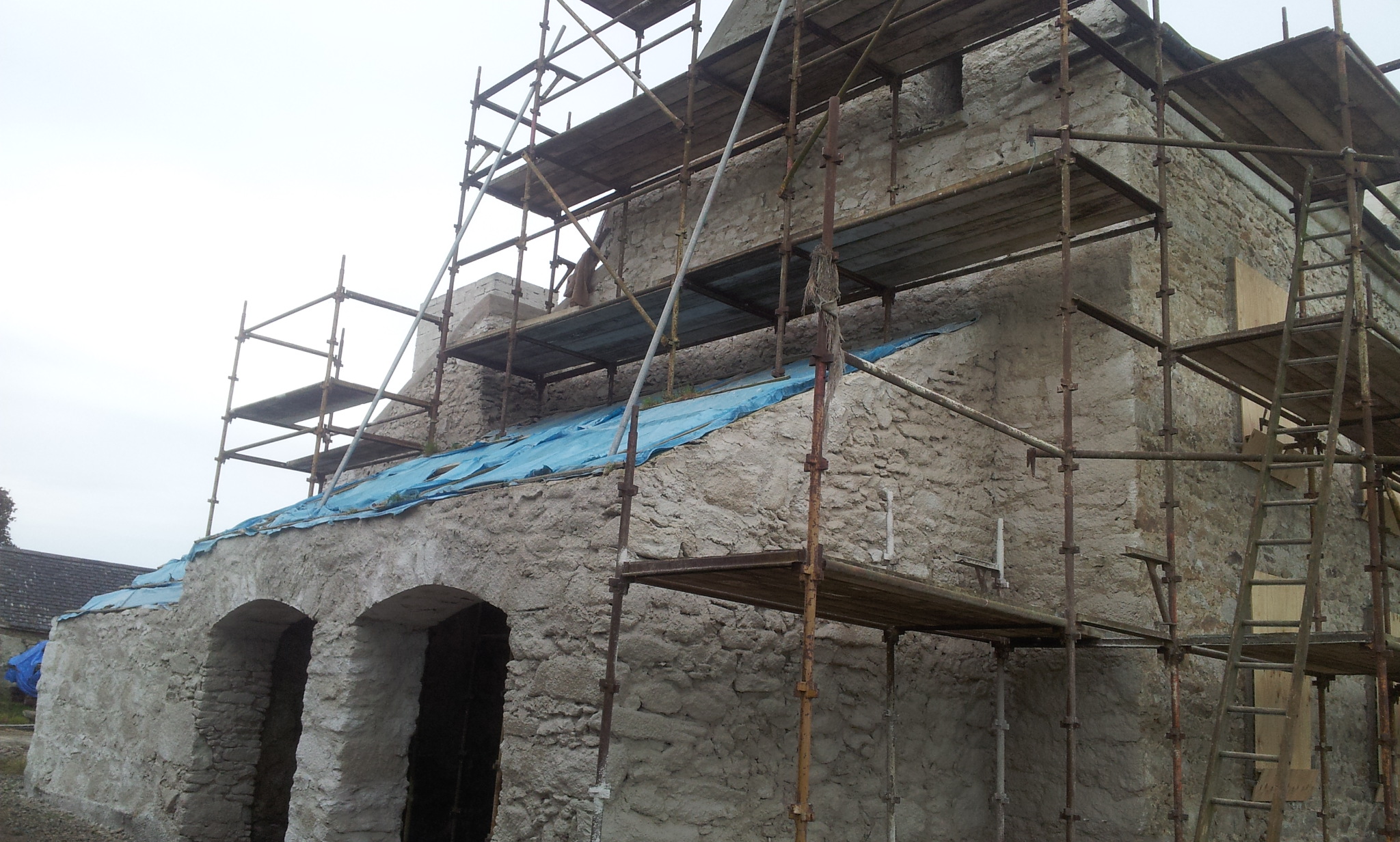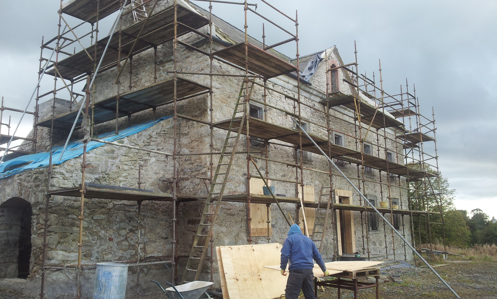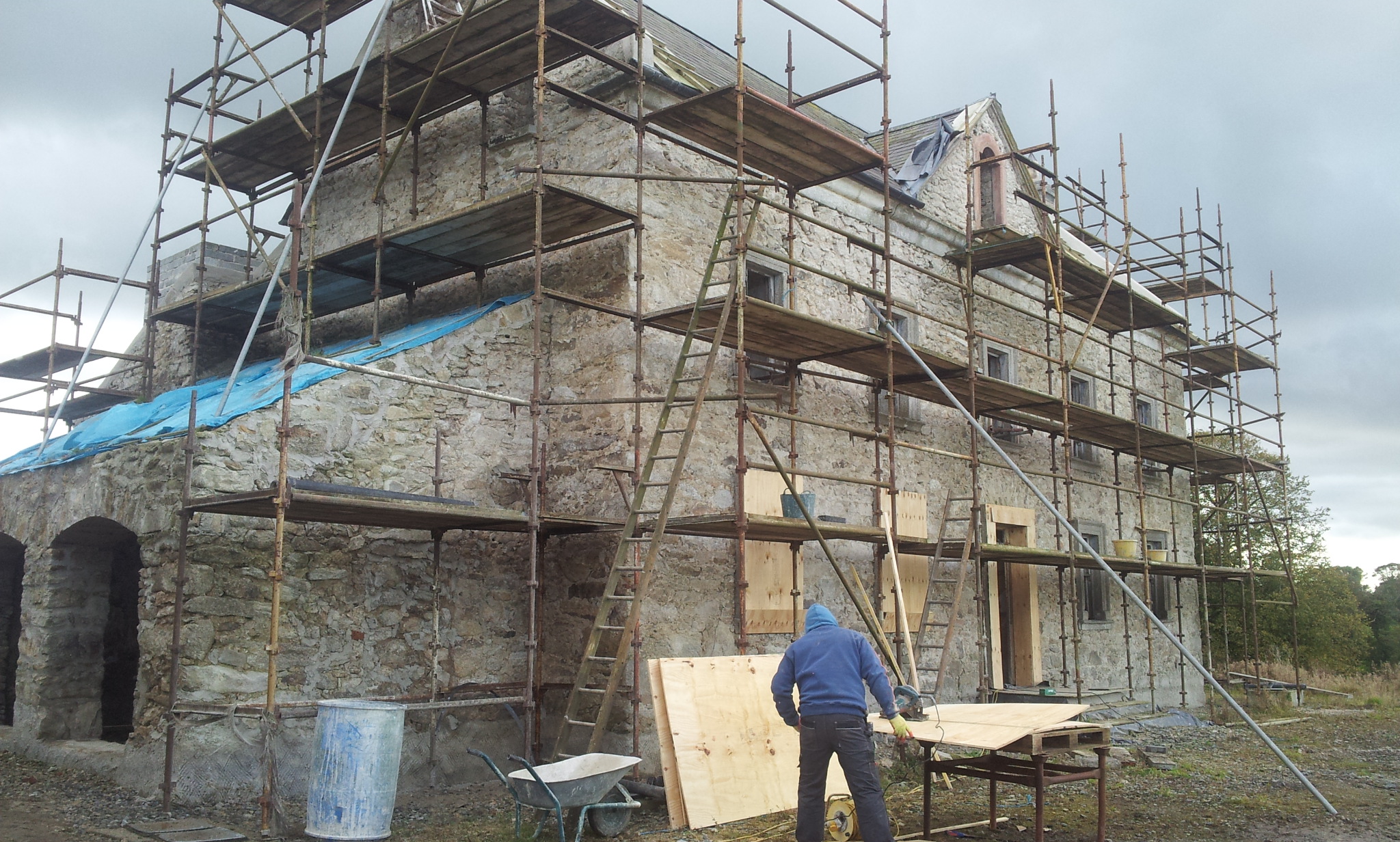 works, PHASED WORKS 2011 - 2012 - 2013 - 2019- 2022 Other Sub Contractors: Main Roof by other contractor, small lean too roofs by OldBuilders Job Description: External conservation work, stoneworks and replace Lime Mortar barges. Comprising of rebuilding of stone walls, chimneys, stone patching, re-roofing of lean toos. Drainage utilities, waste and services. Lime Plastering, Lead flashing. Extensive joinery reproducing 18th century doors architraves stairs New extension in clay block and glass. |
