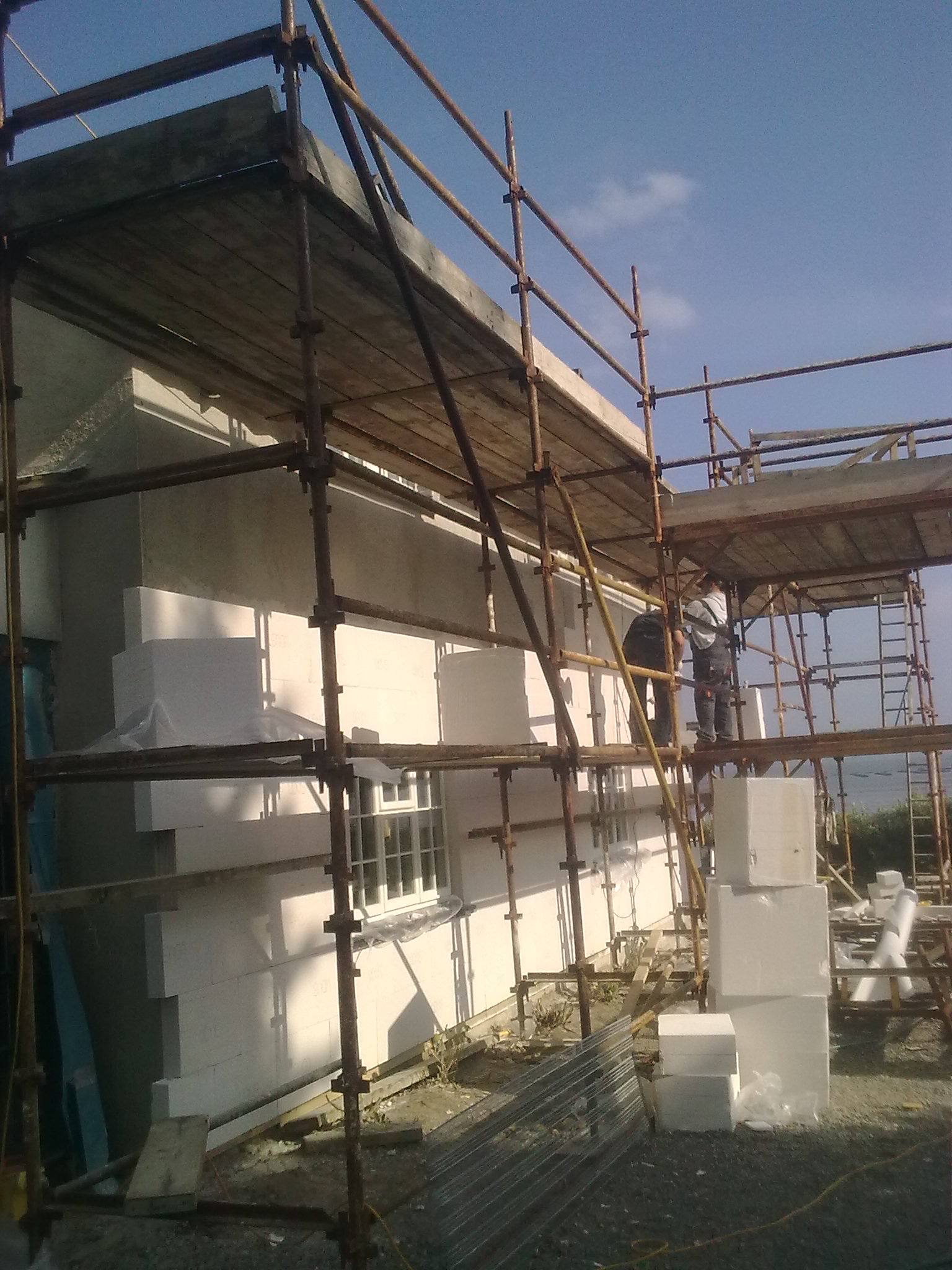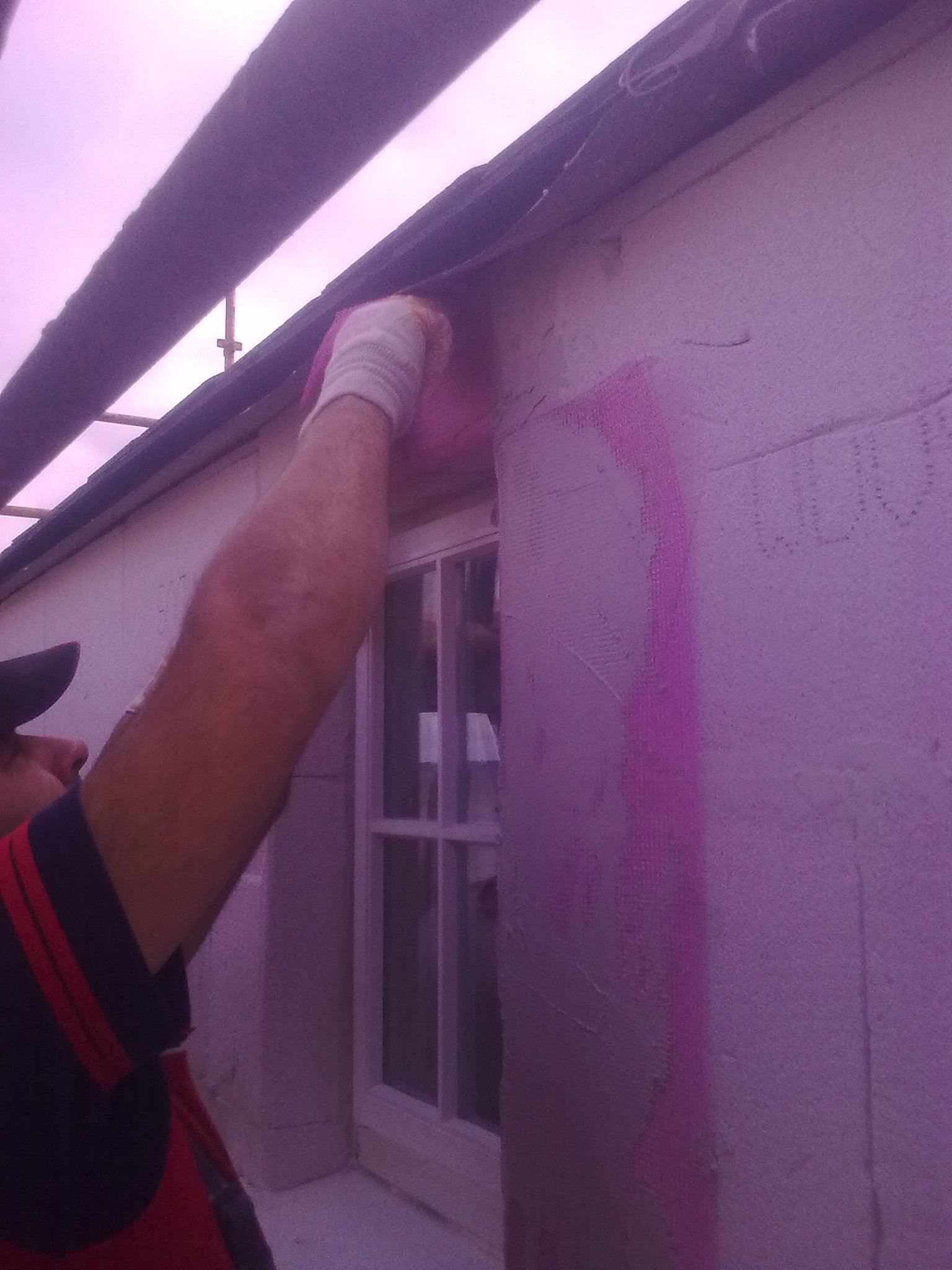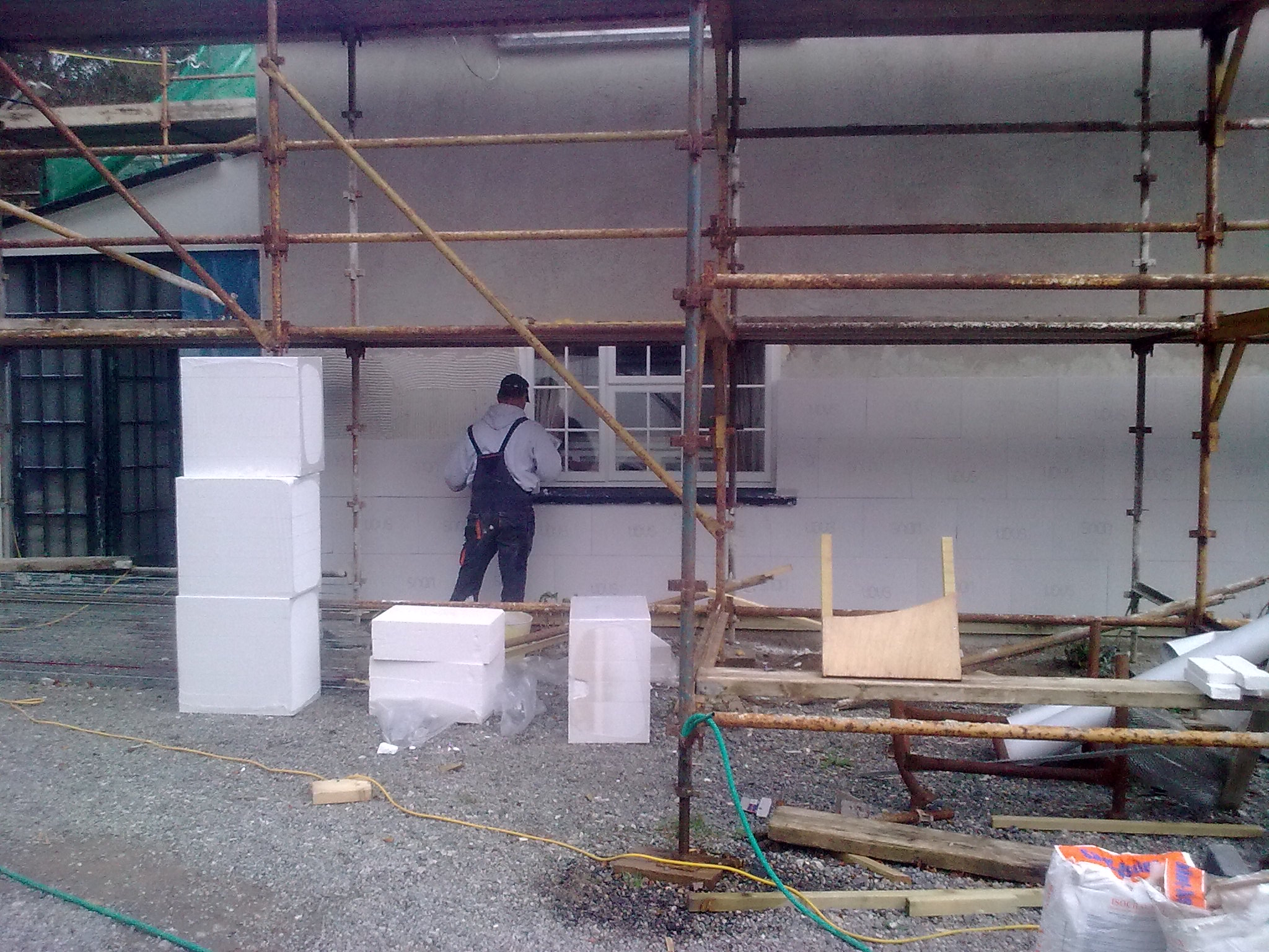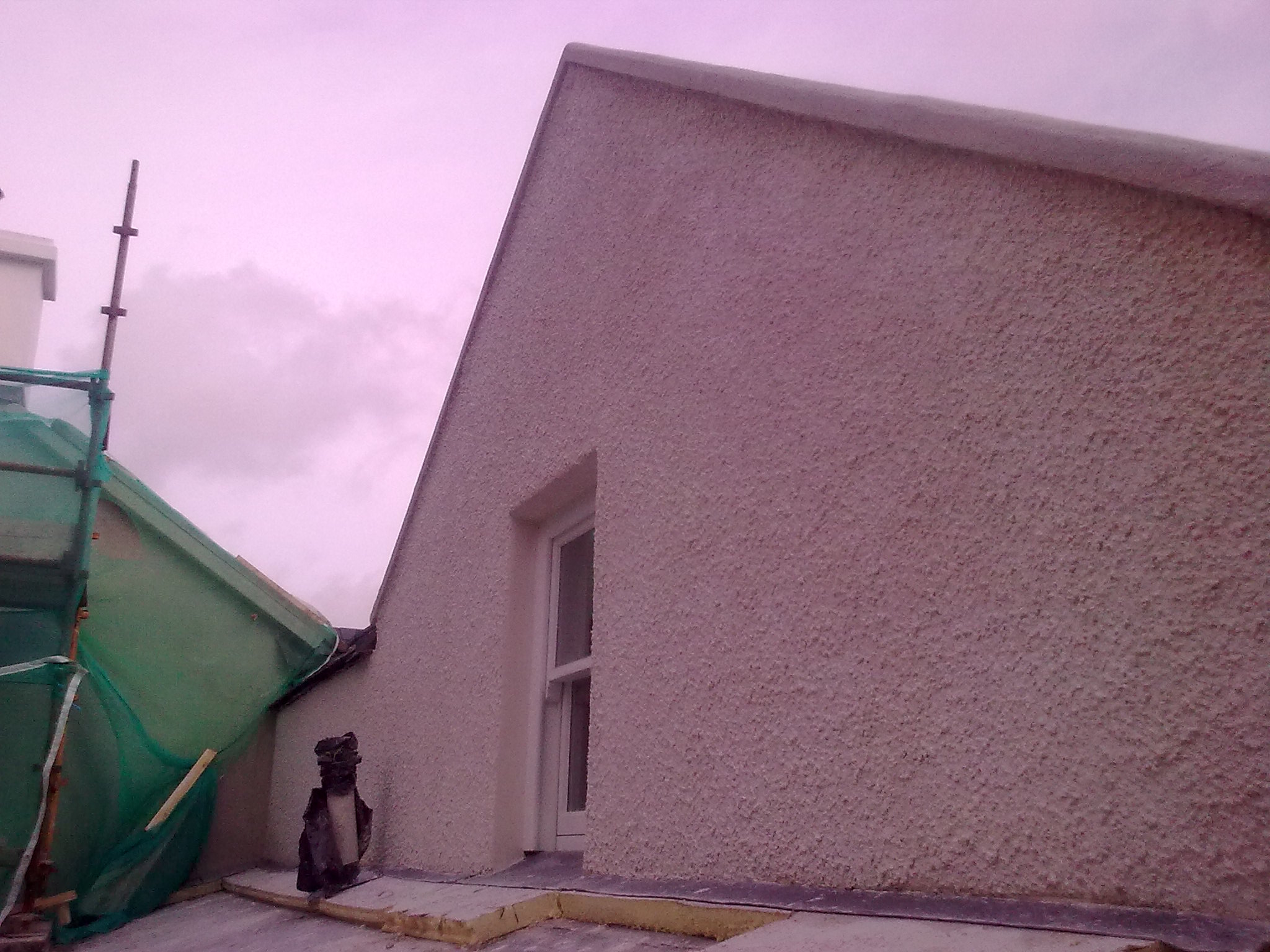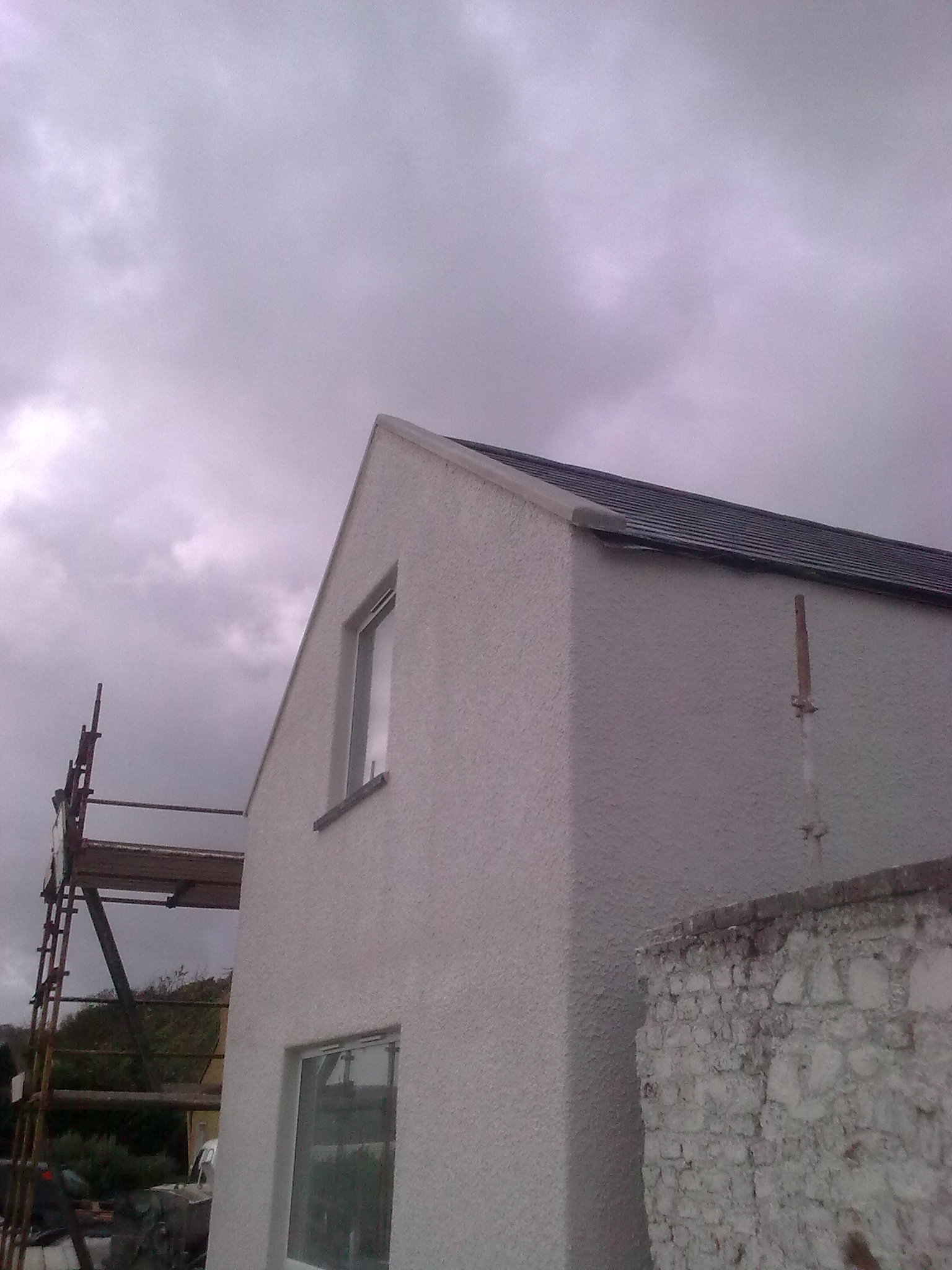 Job Description: External conservation work, replace Lime Mortar rendering, insulate with lime compatible Multipor mineral board insulation of external walls. Lime roof barges.