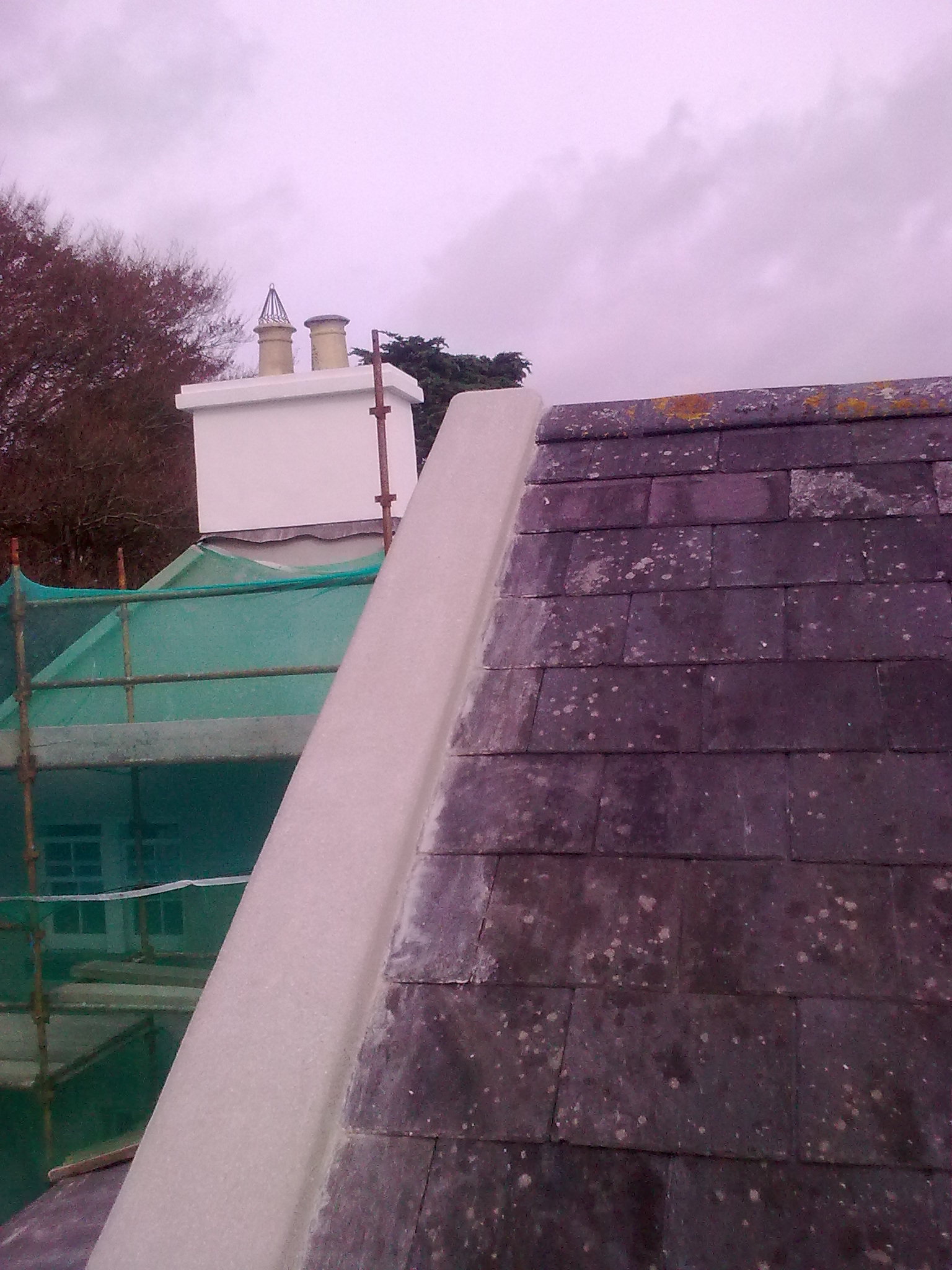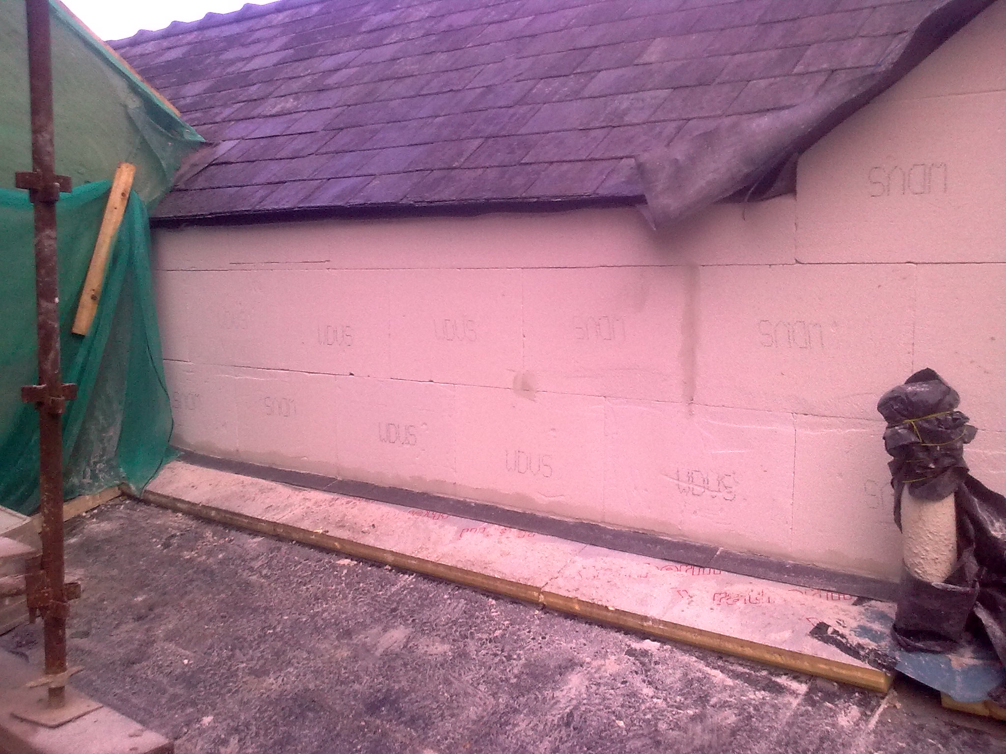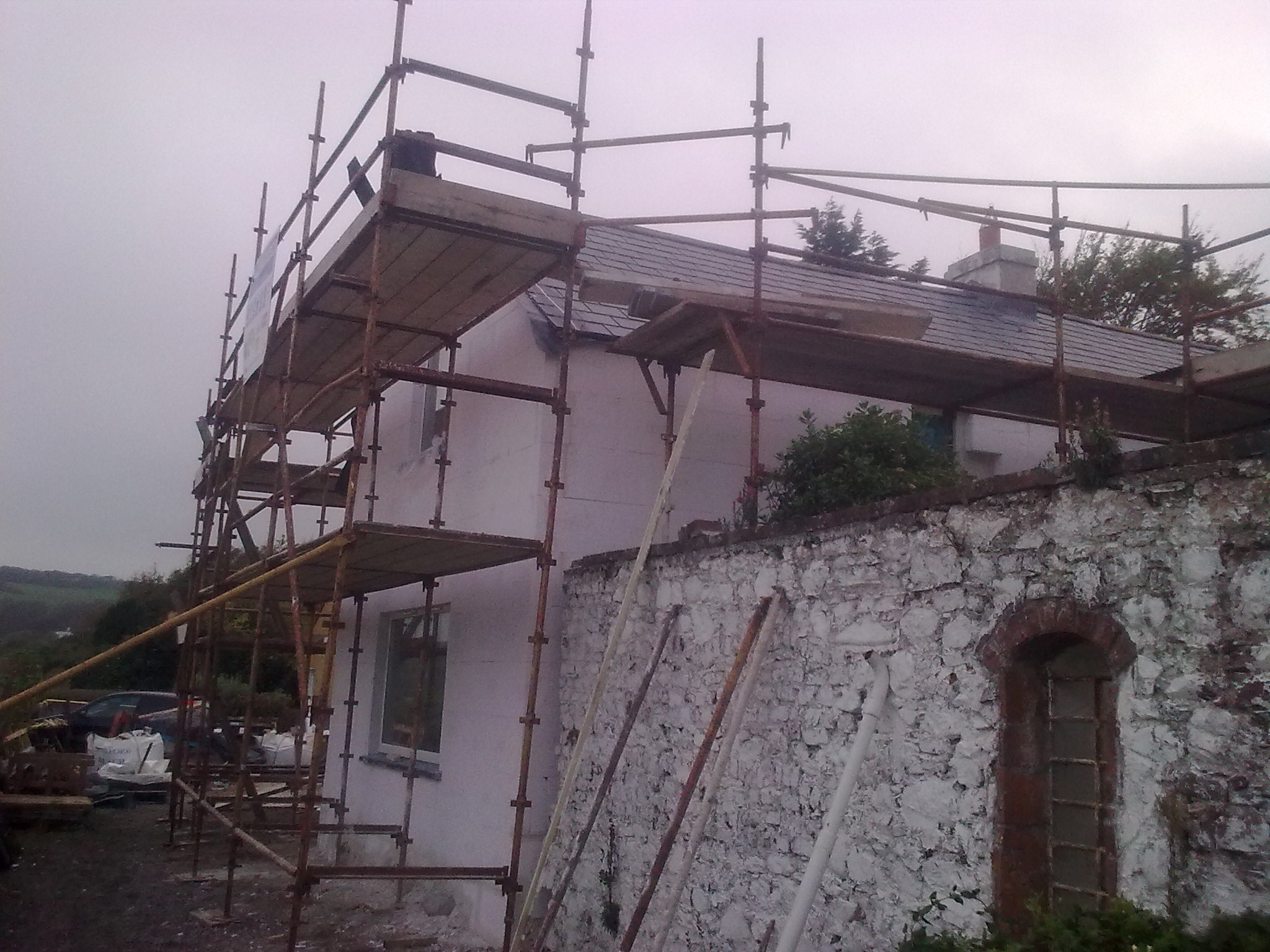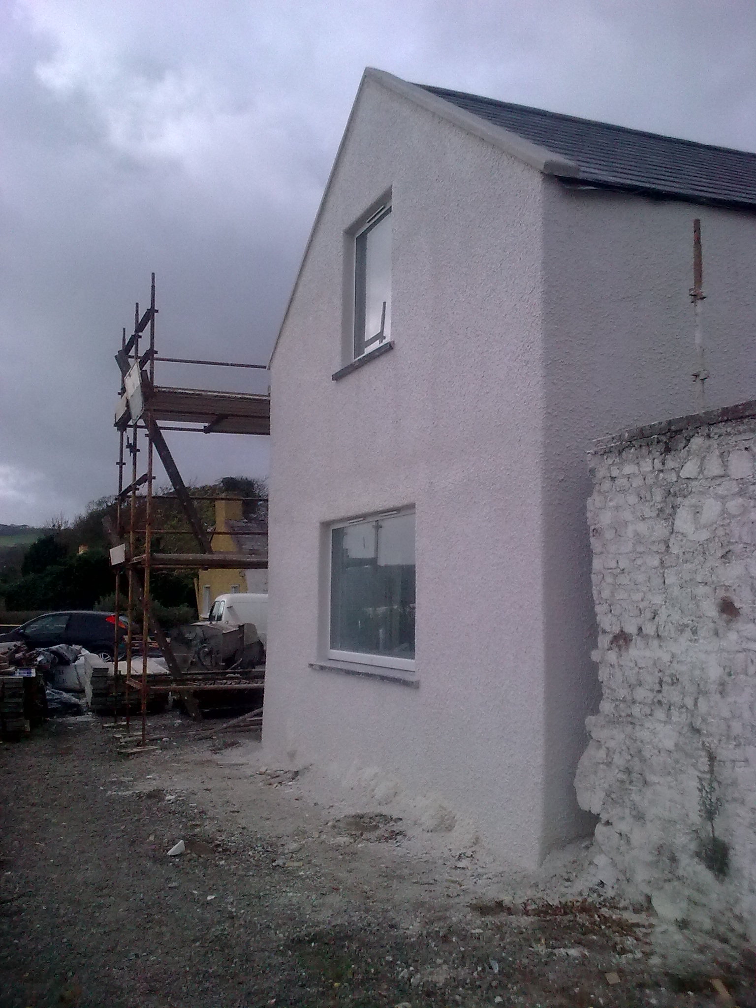 Job Description: External conservation work, replace Lime Mortar rendering, insulate with lime compatible Multipor mineral board insulation of external walls. Lime roof barges.