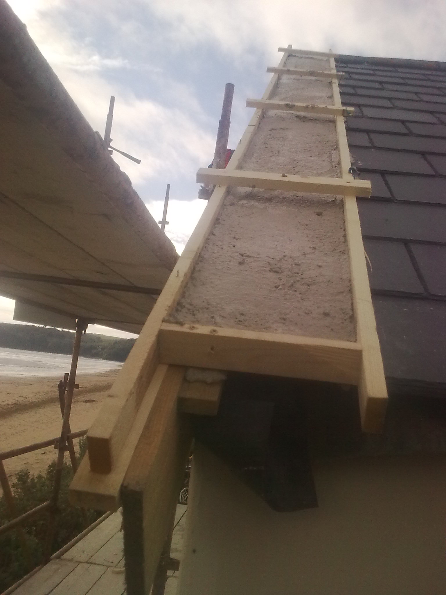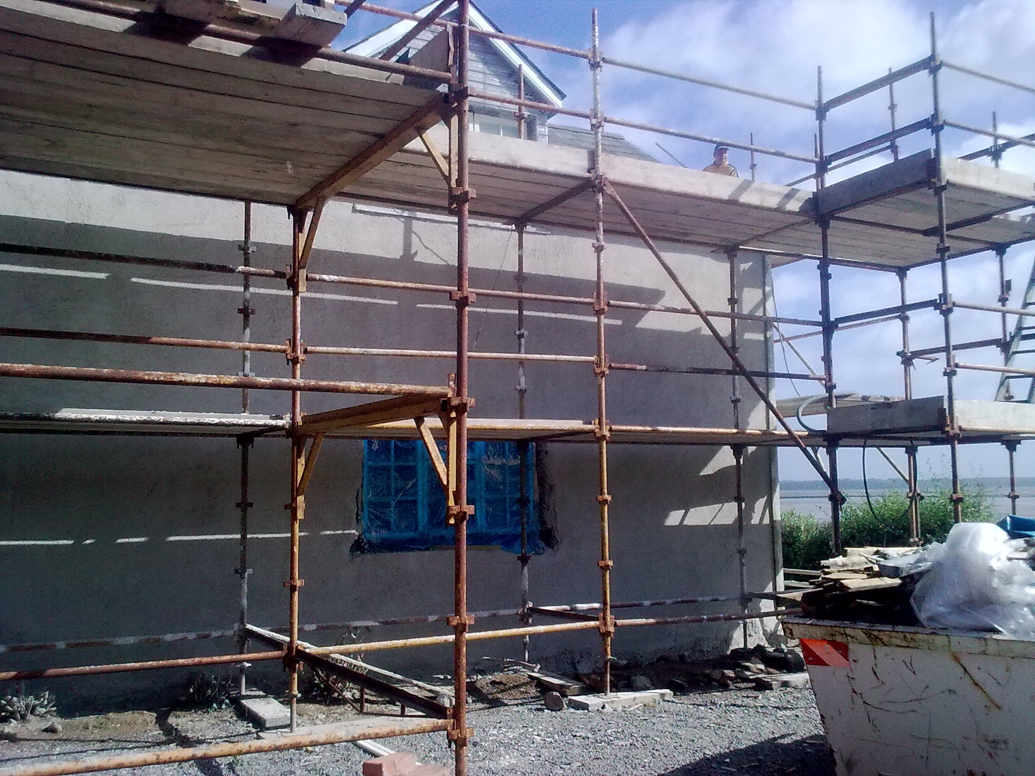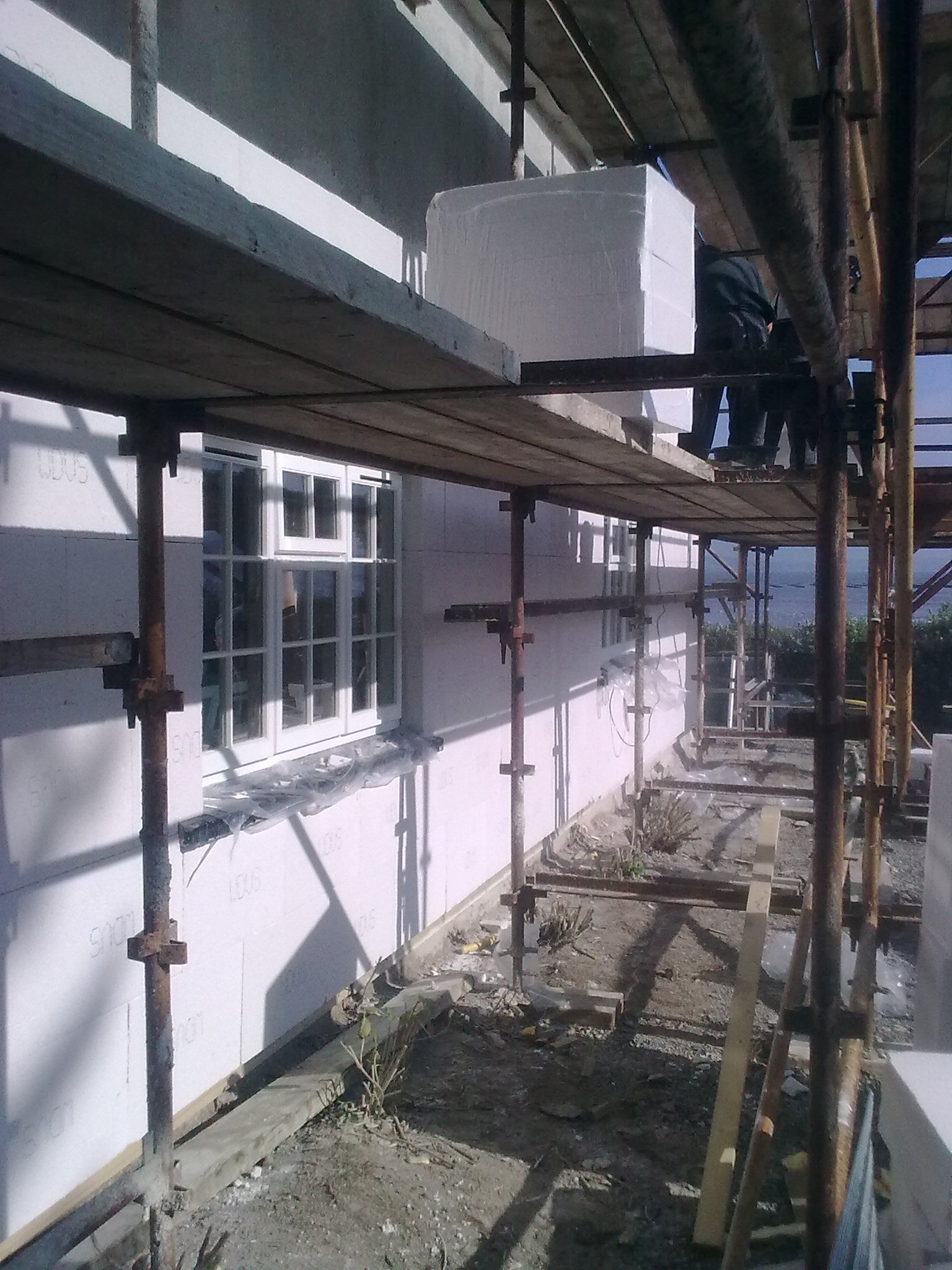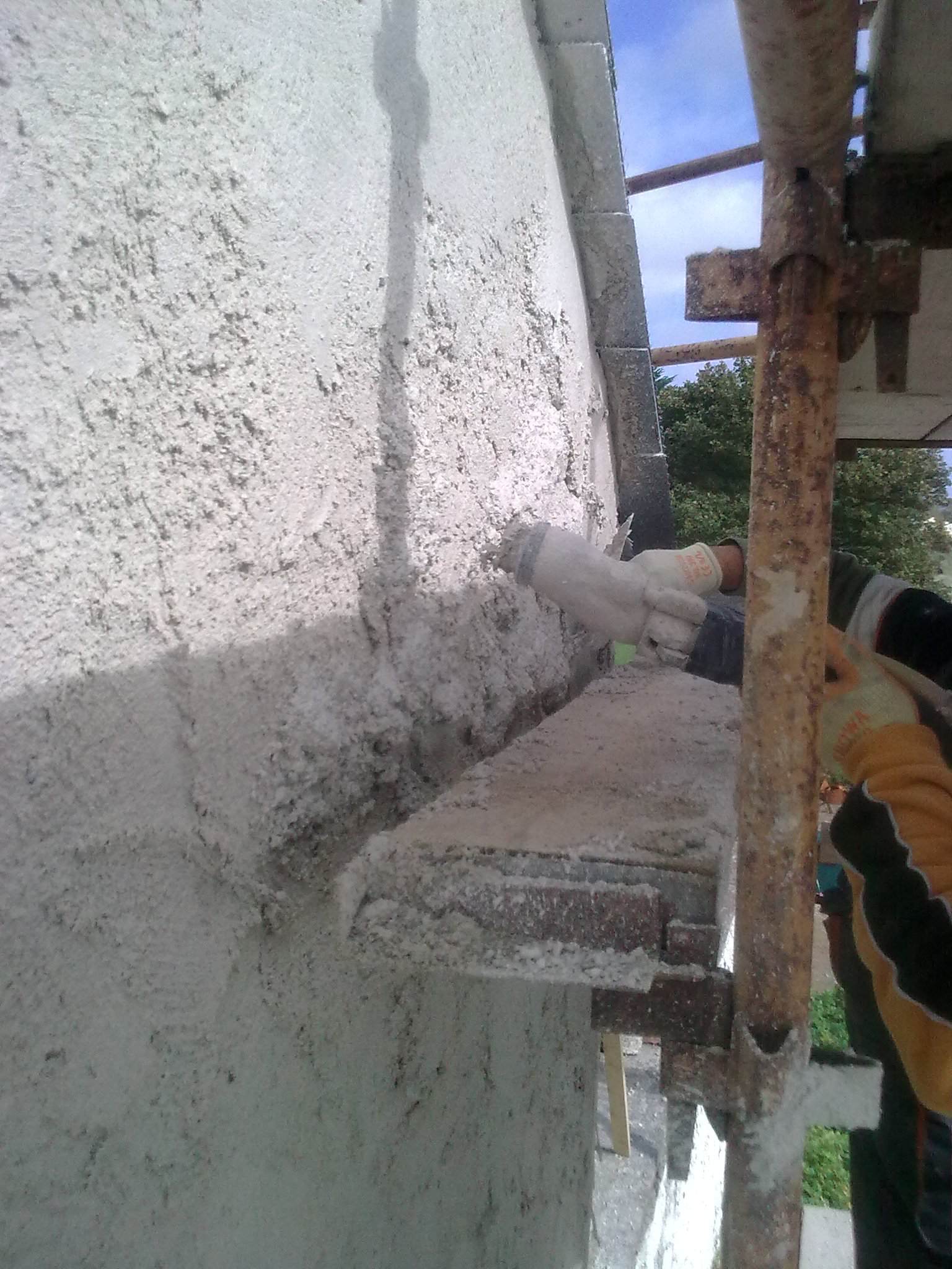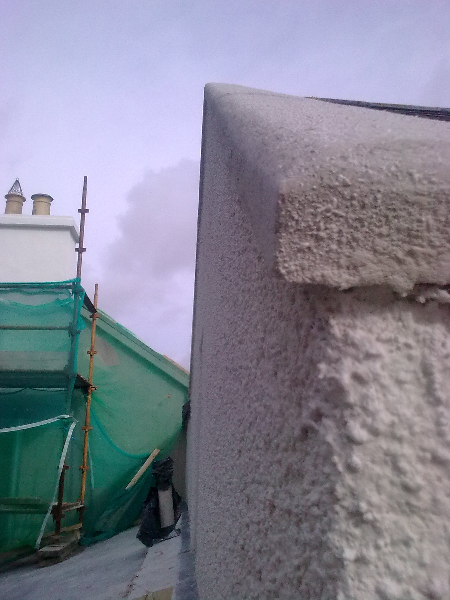 Job Description: External conservation work, replace Lime Mortar rendering, insulate with lime compatible Multipor mineral board insulation of external walls. Lime roof barges.