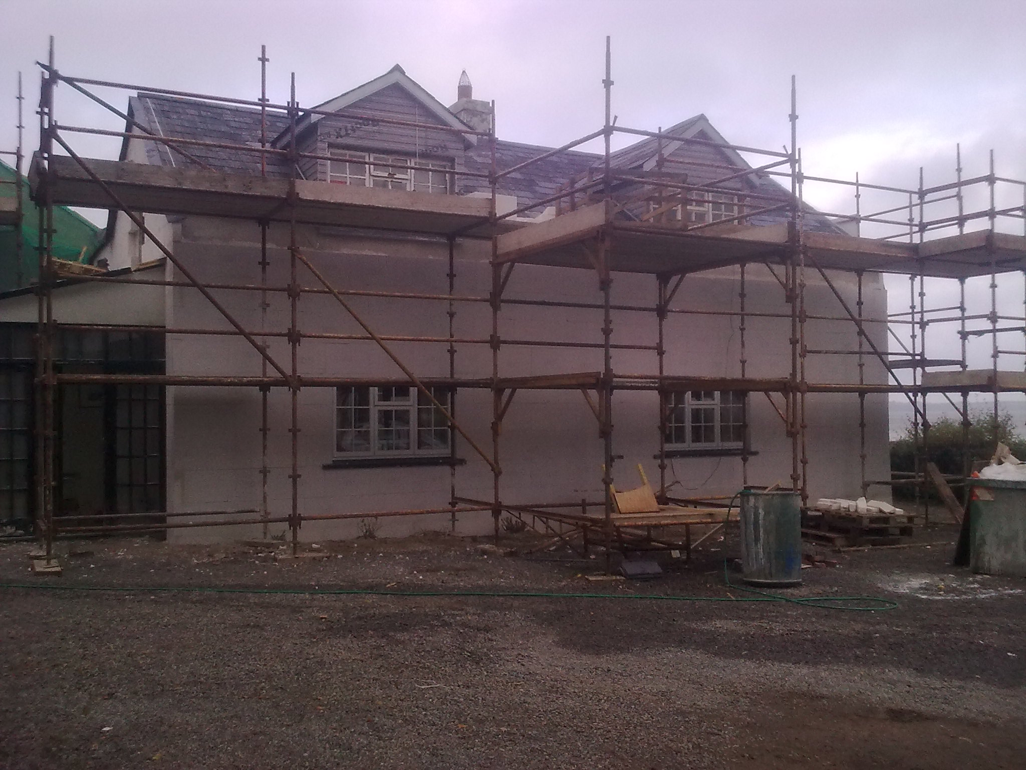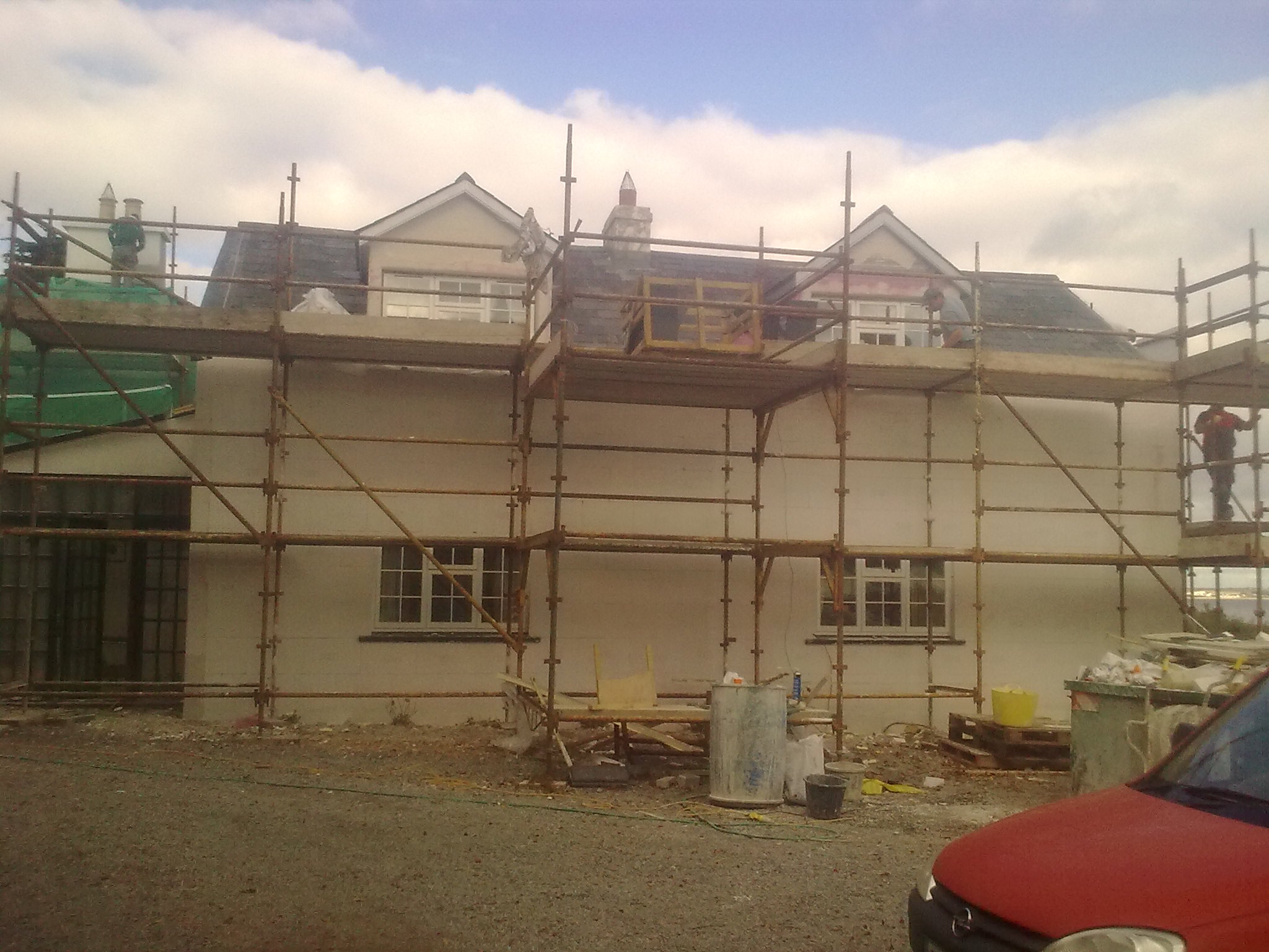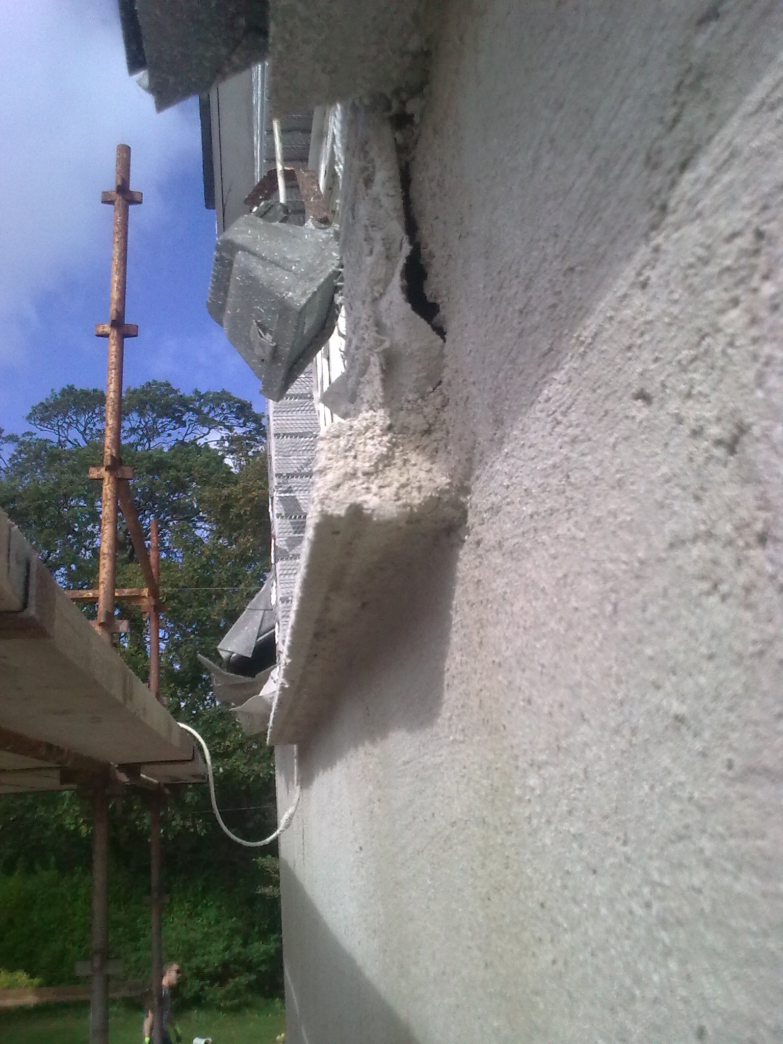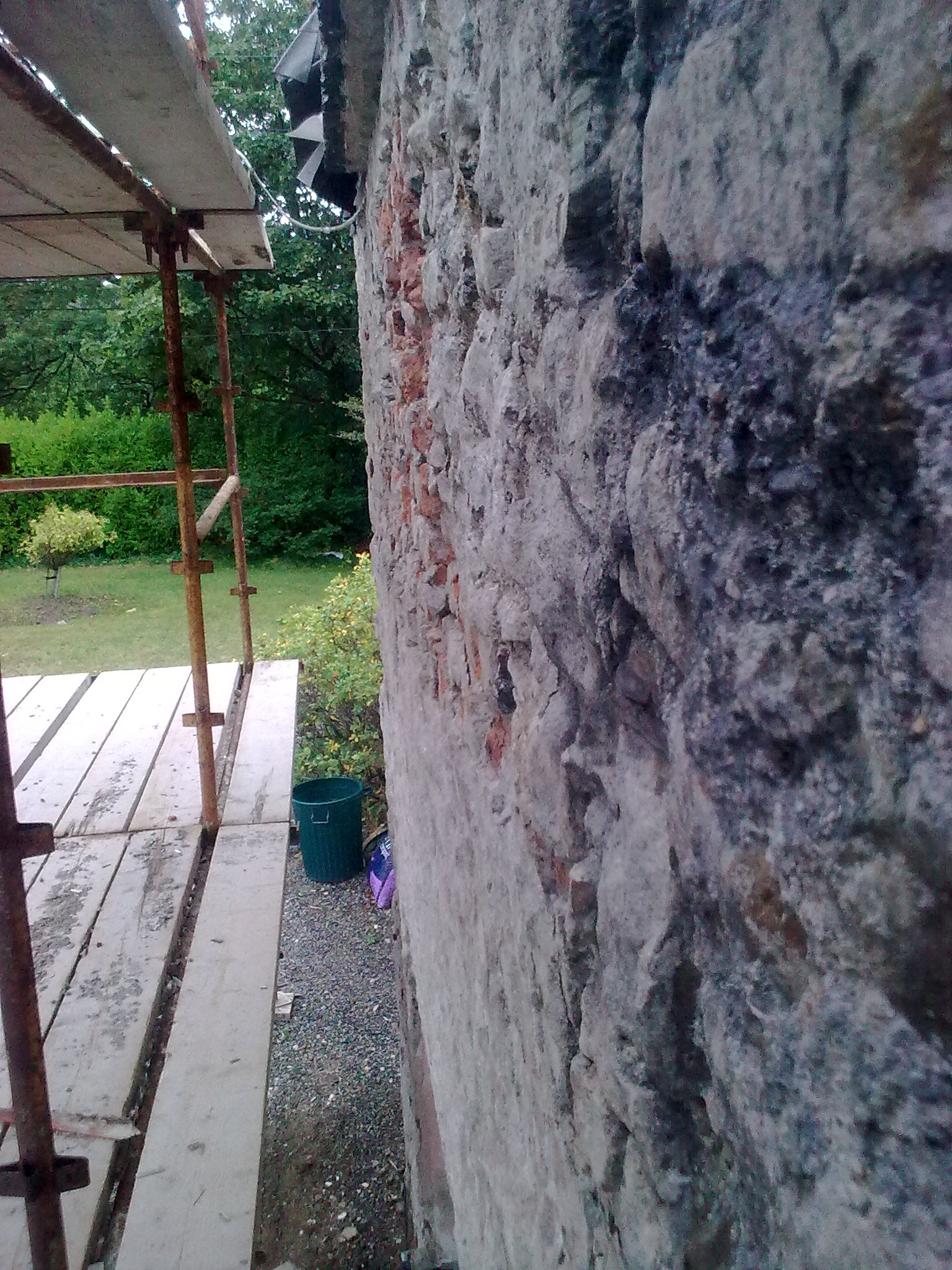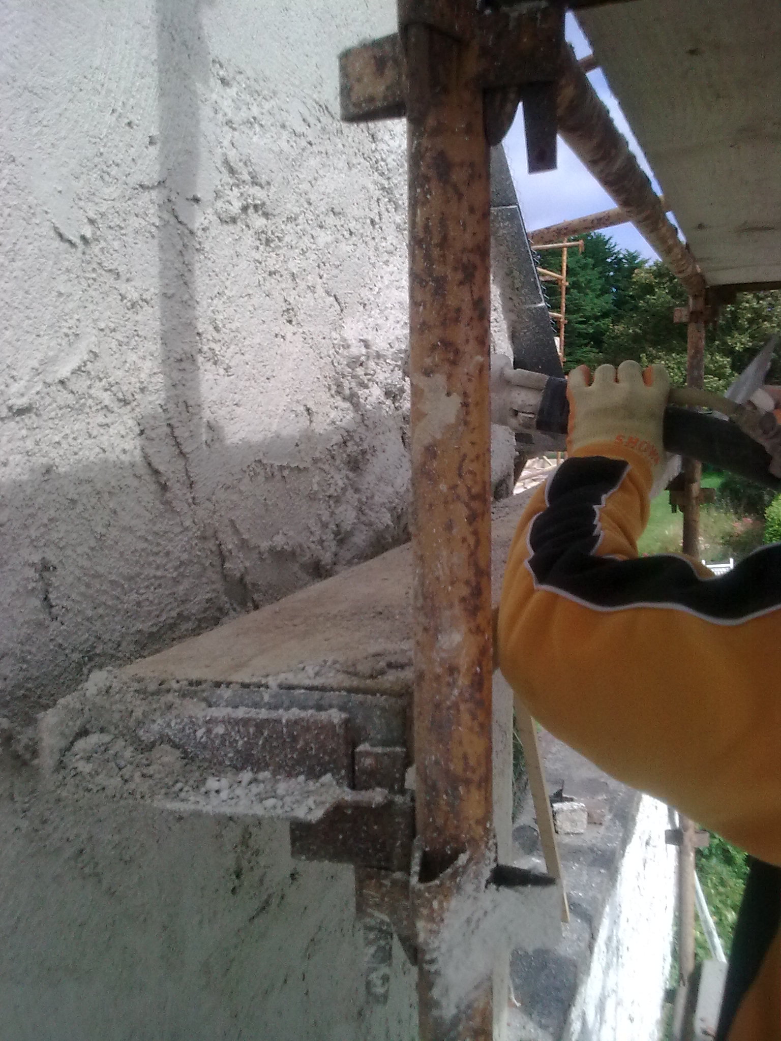 Job Description: External conservation work, replace Lime Mortar rendering, insulate with lime compatible Multipor mineral board insulation of external walls. Lime roof barges.