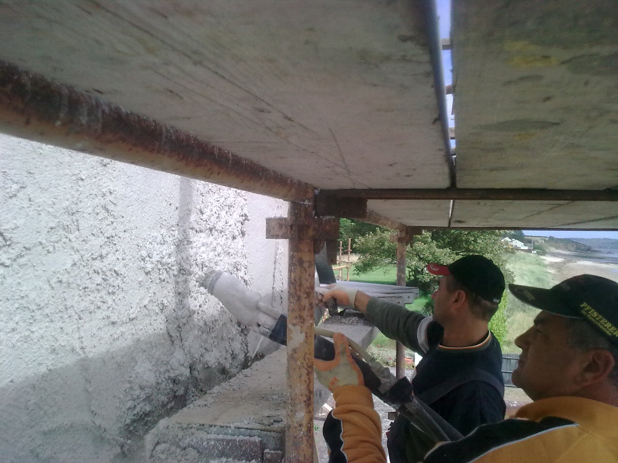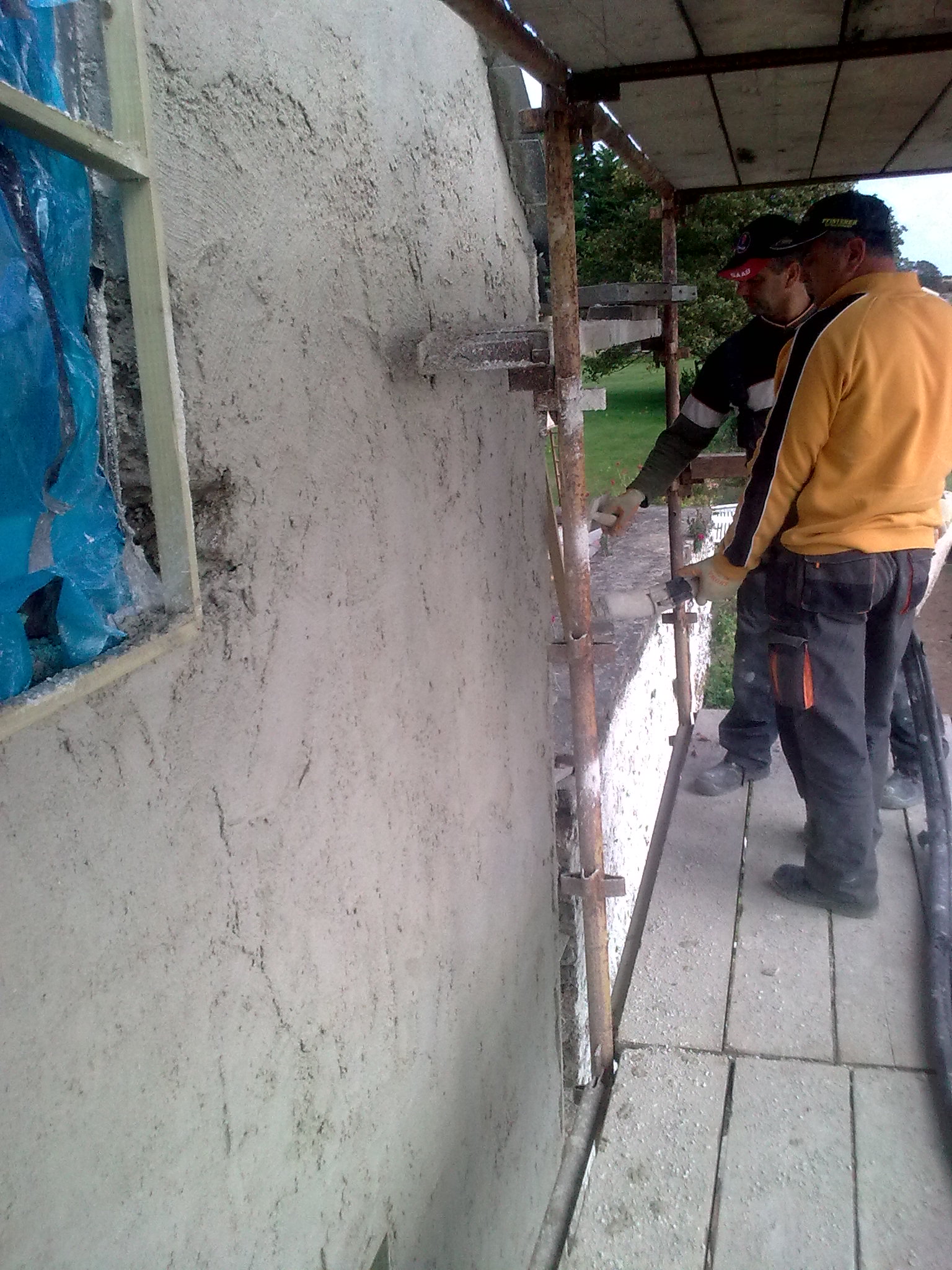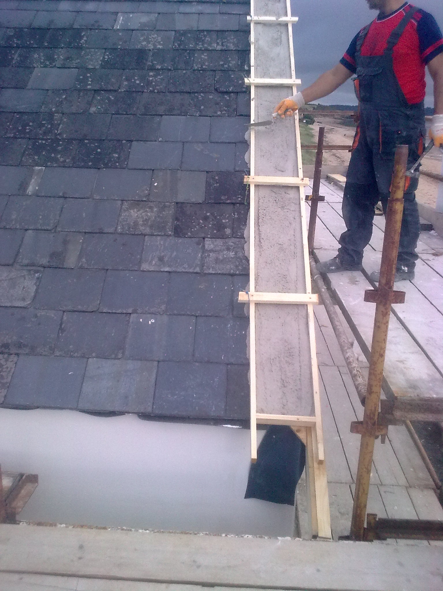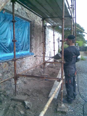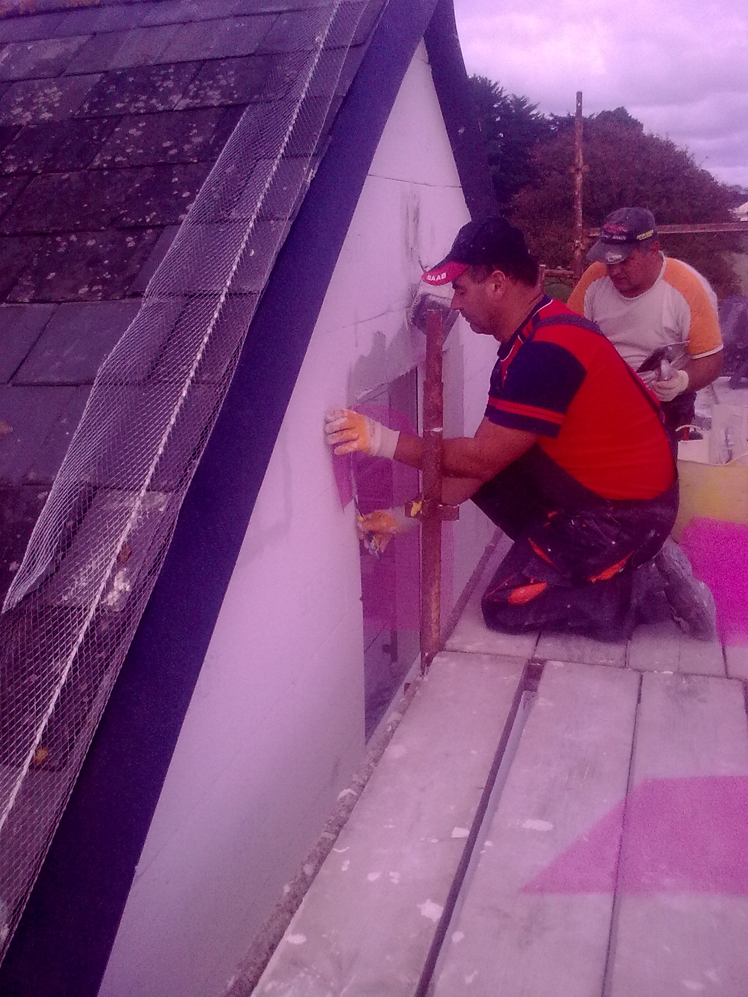 Job Description: External conservation work, replace Lime Mortar rendering, insulate with lime compatible Multipor mineral board insulation of external walls. Lime roof barges.