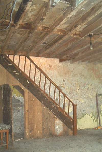 6b Bracken restor - 0038 - stairs are suspended after floor excavated - 20020619.jpg